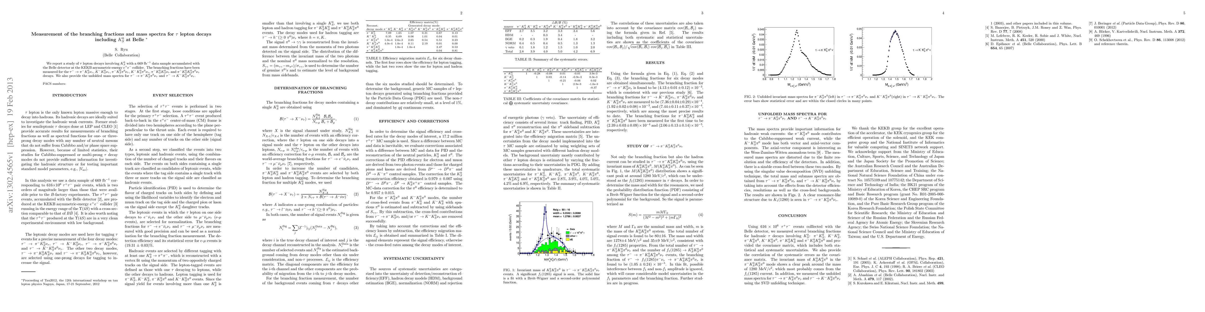 This study measures the branching fractions for various $\tau$ lepton decay modes involving $\Ks$ mesons, using a 669 fb$^{-1}$ data sample from the Belle detector at KEKB. The research also presents the unfolded mass spectra for specific decay channels.