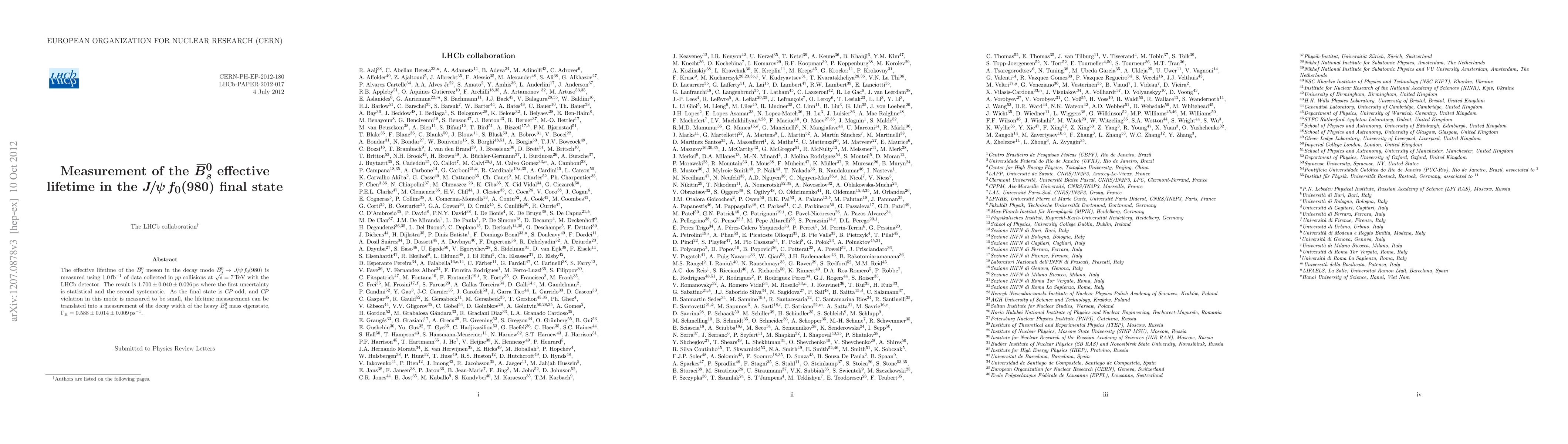 The paper presents a measurement of the Bs meson's effective lifetime in its decay to J/psi f0(980), found to be 1.700 ± 0.040 ± 0.026 ps using LHCb data from 7 TeV pp collisions. Given the CP-odd nature of the final state and negligible CP violation, this result translates to the heavy Bs mass eigenstate's decay width, Γ_H = (0.588 ± 0.014 ± 0.009)/ps.