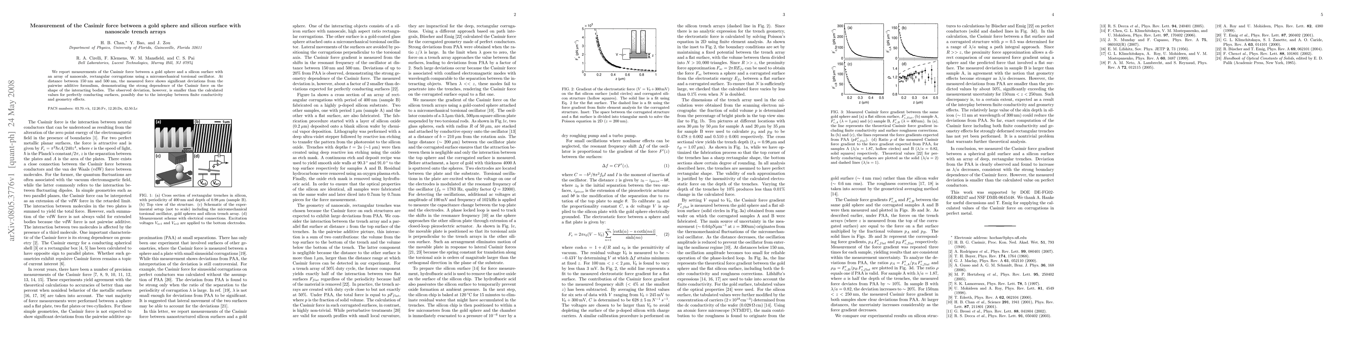 This study measures the Casimir force between a gold sphere and a silicon surface with nanoscale trench arrays, revealing significant deviations from the pairwise additive model at distances between 150 nm and 500 nm. The observed force deviations are smaller than expected for perfectly conducting surfaces, suggesting a complex interplay between finite conductivity and geometry.