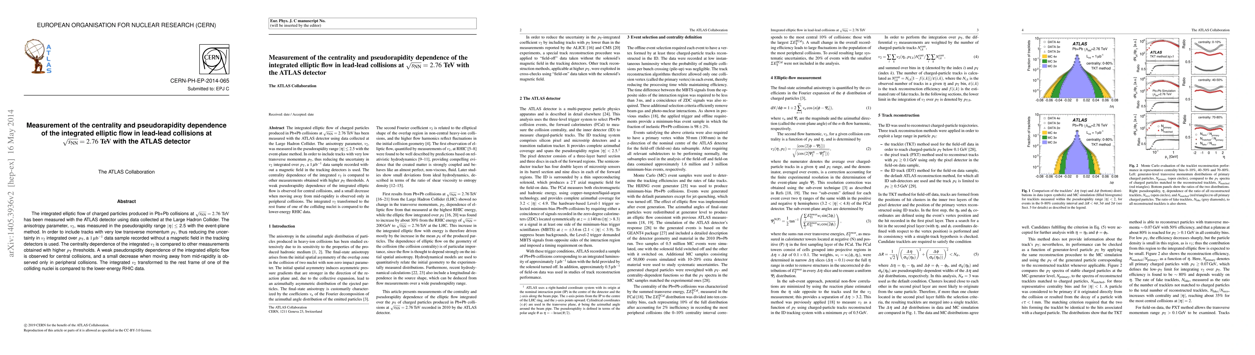 This study measures the integrated elliptic flow of charged particles in Pb+Pb collisions at sqrt(s_NN)=2.76 TeV using the ATLAS detector, finding a weak pseudorapidity dependence and a small decrease in integrated v_2 for peripheral collisions. Comparisons with higher-pT thresholds and lower-energy RHIC data are also presented.