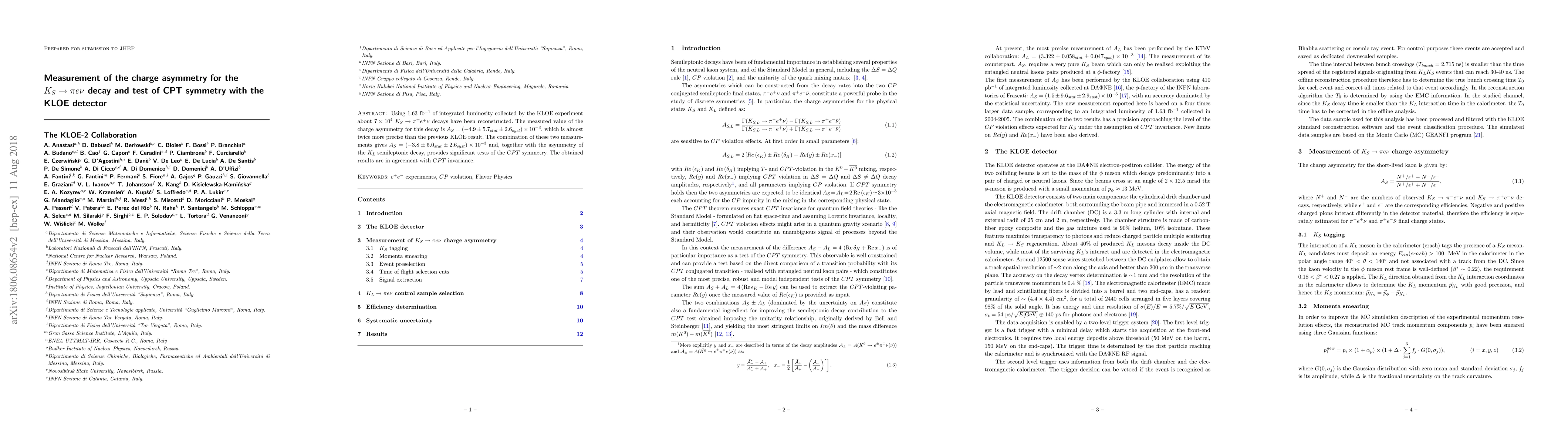 The KLOE experiment measures a charge asymmetry for $K_S \rightarrow \pi^{\pm}e^{\mp}\nu$ decay with improved precision, providing a significant test of CPT symmetry, which is found to be consistent with theoretical predictions.