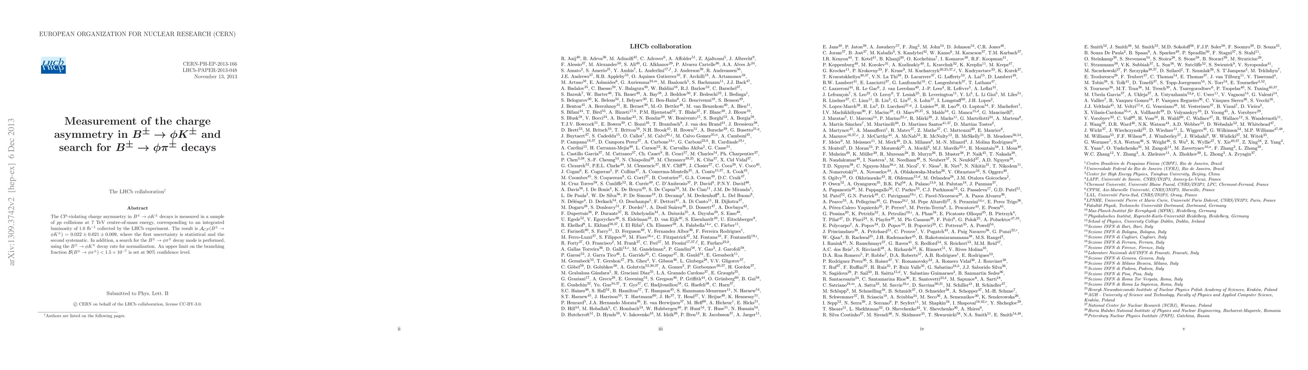 The LHCb experiment measures the \CP-violating charge asymmetry in $B^{\pm}\rightarrow \phi K^{\pm}$ decays to be $0.022\pm 0.021 \pm 0.009$. A search for $B^{\pm}\rightarrow \phi \pi^{\pm}$ yields an upper limit of $1.5\times 10^{-7}$ for the branching fraction at 90% confidence level.