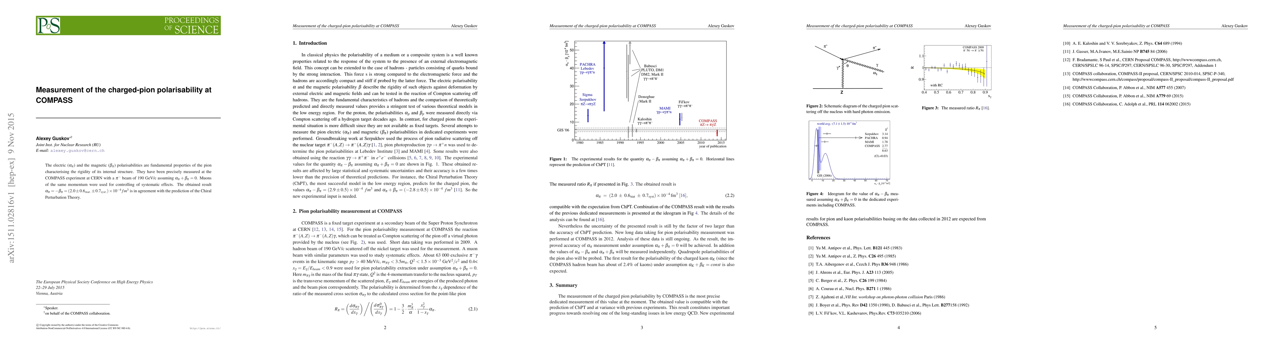 The COMPASS experiment at CERN measured the electric and magnetic polarisabilities of charged pions, finding ${\alpha}_{\pi}=-{\beta}_{\pi}=(2.0\pm 0.6_{stat.}\pm 0.7_{syst.})\times 10^{-4} fm^3$, consistent with Chiral Perturbation Theory predictions. Systematic effects were controlled using muons of the same momentum.