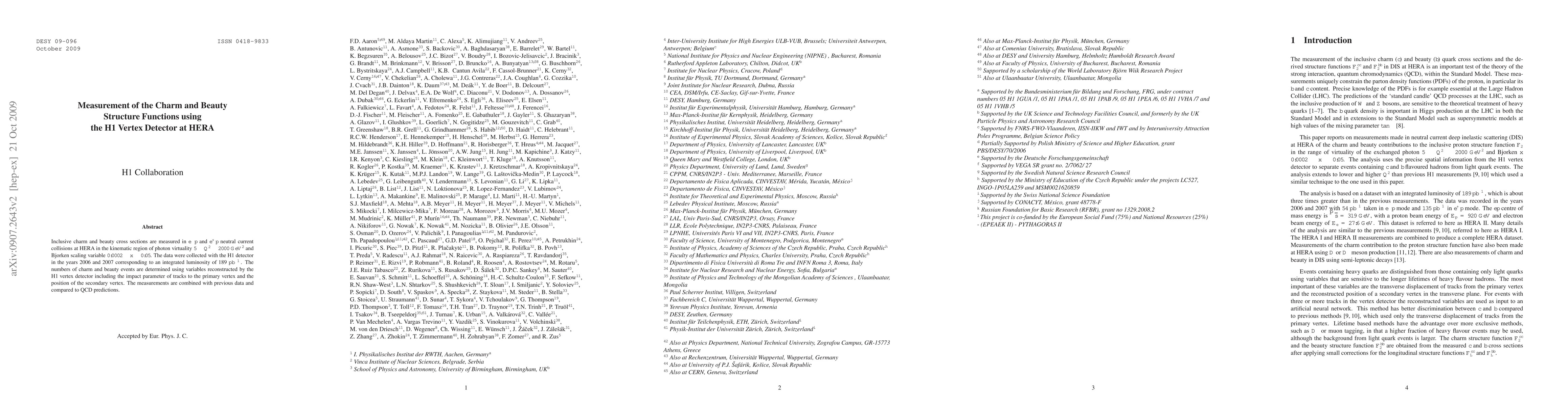This paper measures inclusive charm and beauty cross sections in neutral current collisions at HERA using the H1 vertex detector, analyzing data from 2006-2007. The results are compared to QCD predictions and combined with previous data to provide a comprehensive analysis of these structure functions.