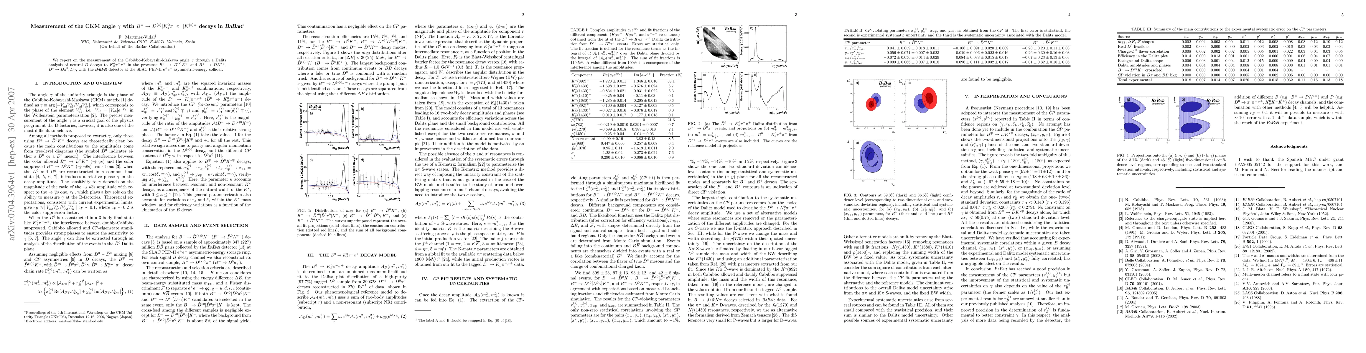Researchers at BaBar measured the Cabibbo-Kobayashi-Maskawa angle gamma through a study of neutral D decays to K0s pi- pi+ in high-energy collisions.