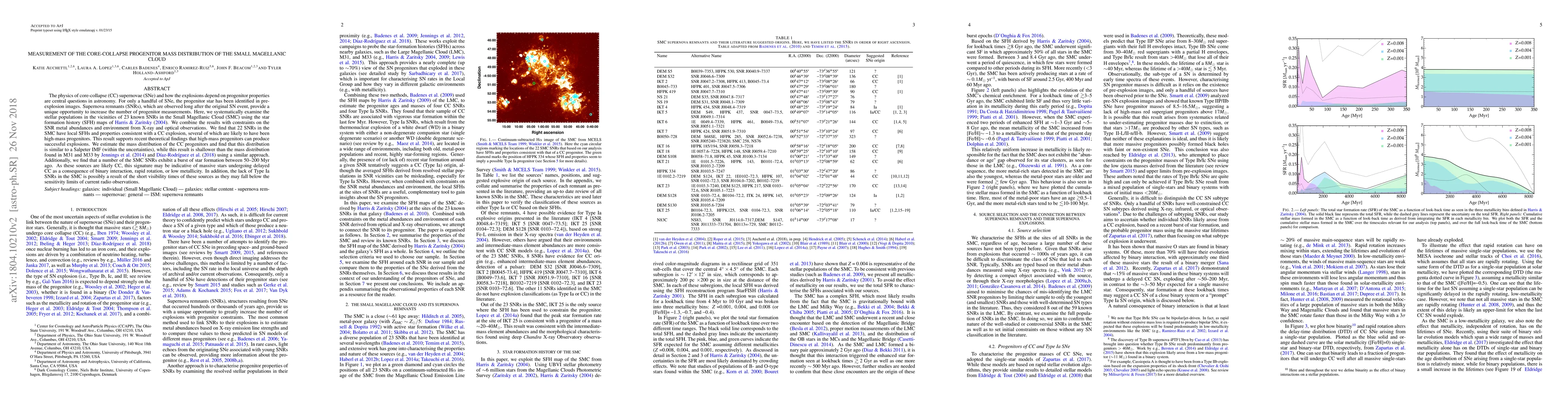 The physics of core-collapse (CC) supernovae (SNe) and how the explosions depend on progenitor properties are central questions in astronomy. For only a handful of SNe, the progenitor star has been identified in pre-explosion images. Supernova remnants (SNRs), which are observed long after the original SN event, provide a unique opportunity to increase the number of progenitor measurements. Here, we systematically examine the stellar populations in the vicinities of 23 known SNRs in the Small Magellanic Cloud (SMC) using the star formation history (SFH) maps of Harris & Zaritsky (2004). We combine the results with constraints on the SNR metal abundances and environment from X-ray and optical observations. We find that 22 SNRs in the SMC have local SFHs and properties consistent with a CC explosion, several of which are likely to have been high-mass progenitors. This result supports recent theoretical findings that high-mass progenitors can produce successful explosions. We estimate the mass distribution of the CC progenitors and find that this distribution is similar to a Salpeter IMF (within the uncertainties), while this result is shallower than the mass distribution found in M31 and M33 by Jennings et al. (2014) and D\'{\i}az-Rodr\'{\i}guez et al. (2018) using a similar approach. Additionally, we find that a number of the SMC SNRs exhibit a burst of star formation between 50-200 Myr ago. As these sources are likely CC, this signature may be indicative of massive stars undergoing delayed CC as a consequence of binary interaction, rapid rotation, or low metallicity. In addition, the lack of Type Ia SNRs in the SMC is possibly a result of the short visibility times of these sources as they may fall below the sensitivity limits of current radio observations.