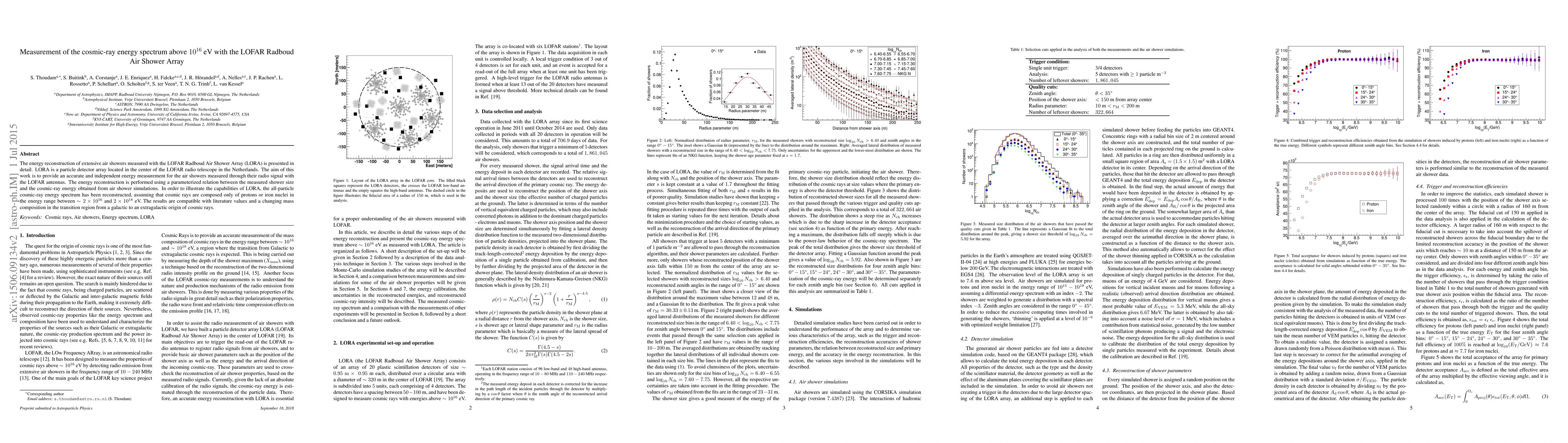 This paper details the energy reconstruction of extensive air showers using the LOFAR Radboud Air Shower Array (LORA) and presents an independent measurement of the cosmic-ray energy spectrum above $10^{16}$ eV. The results indicate a changing mass composition in cosmic rays transitioning from galactic to extragalactic origins.