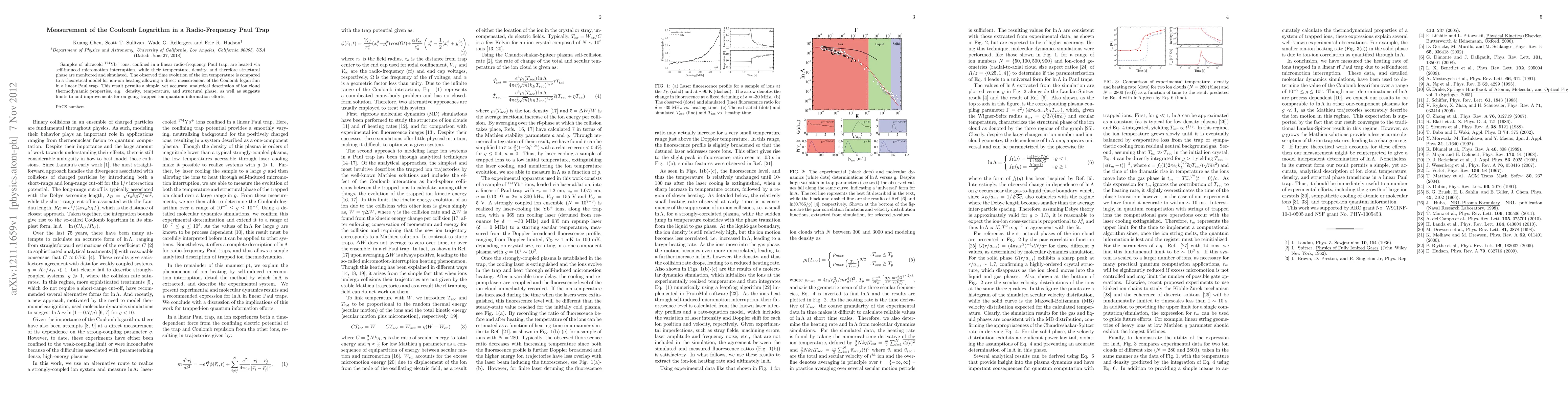 This paper measures the Coulomb logarithm in a radio-frequency Paul trap using ultracold 174 Yb+ ions. The study compares the time evolution of ion temperature to theoretical models, providing insights into ion cloud thermodynamic properties and implications for quantum information processing.