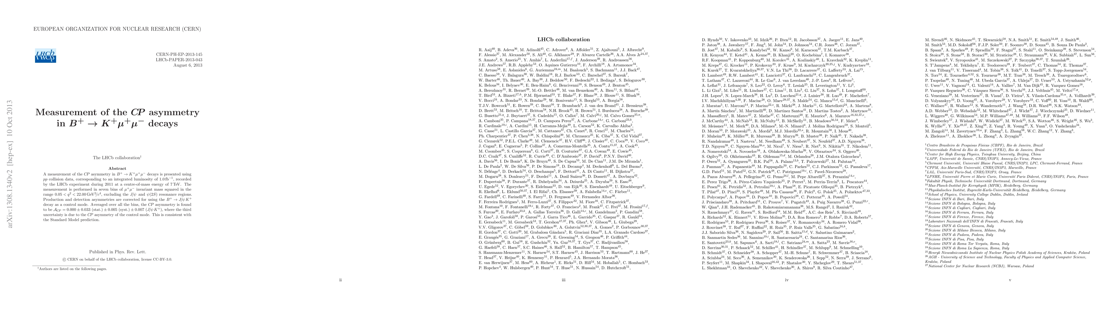 Researchers measured the $C\P$ asymmetry in a specific type of particle decay using LHCb data, finding results consistent with the Standard Model prediction.