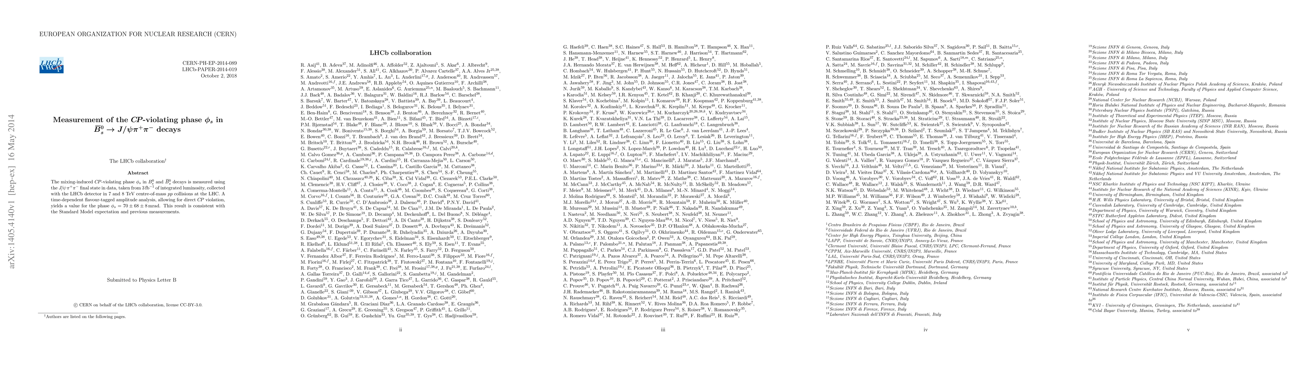 This study measures the CP-violating phase $\phi_s$ in $B^0_s$ meson decays to $J/\psi \pi^+\pi^-$ using LHCb data from 7 and 8 TeV proton-proton collisions, yielding $\phi_s=70\pm 68\pm 8$ mrad. The result aligns with Standard Model predictions and prior measurements.