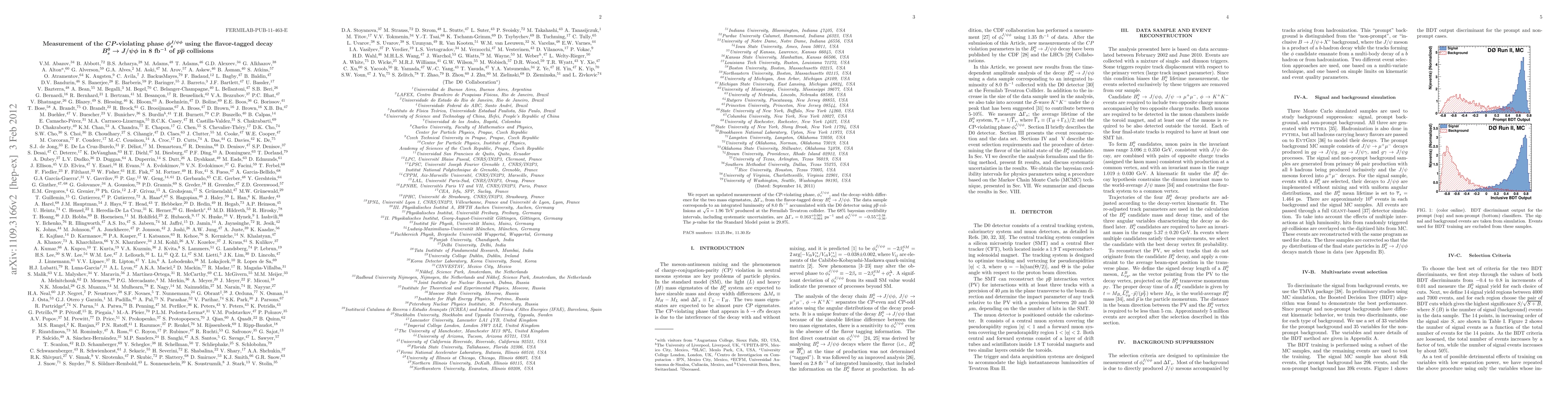 This paper reports an updated measurement of the CP-violating phase $\phi_s^{J/\psi \phi}$ and the decay-width difference $\Delta \Gamma_s$ from $B_s^0 \rightarrow J/\psi \phi$ decay using 8 fb$^{-1}$ of $p \barp$ collisions at the Tevatron. The results are $\Delta \Gamma_s = 0.163 \pm 0.065 \, ps^{-1}$ and $\phi_s^{J/\psi \phi} = -0.55 \pm 0.38 \pm 0.36$ with a $p$-value of 29.8% for the Standard Model.