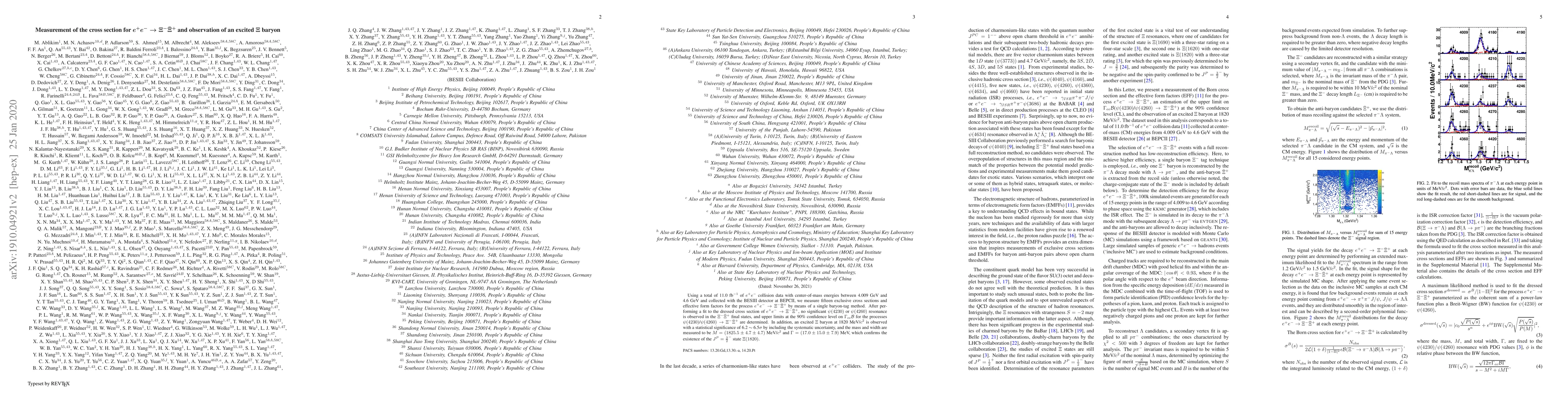 Researchers measured the cross-section for $e^{+}e^{-} ightarrowar{ ext{Xi}}$ in a particle accelerator, observing an excited $ar{ ext{Xi}}$ baryon with mass and width confirmed. No evidence was found for previously predicted resonances.