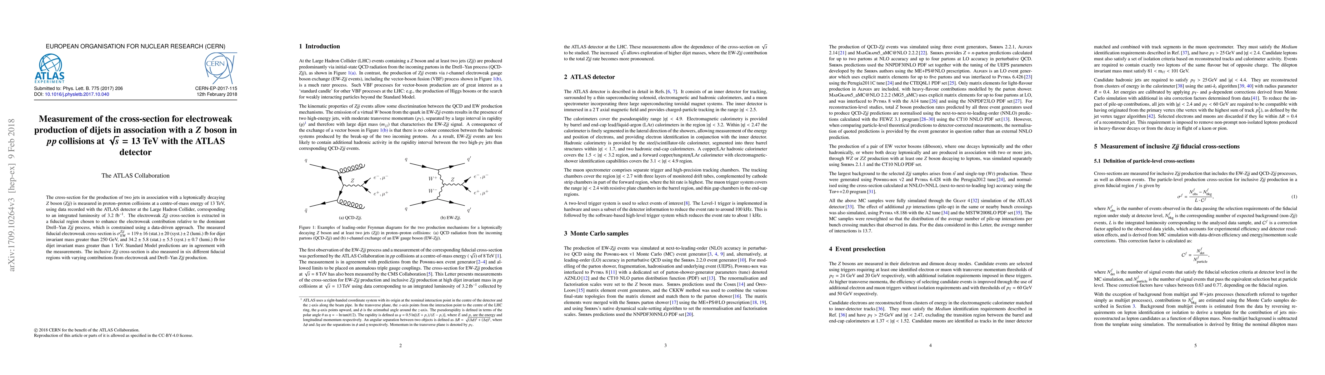 This paper measures the electroweak production cross-section of two jets in association with a Z boson in proton-proton collisions at 13 TeV using the ATLAS detector at the LHC. The results show agreement between measured and Standard Model predictions, with specific cross-section values for dijet invariant masses greater than 250 GeV and 1 TeV.