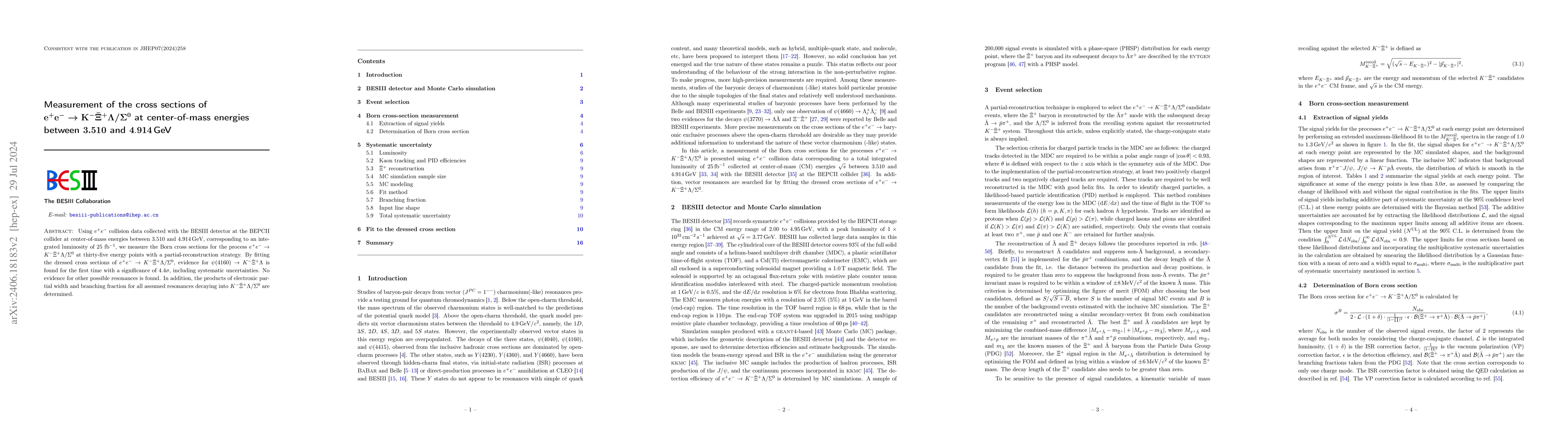 The BESIII detector at BEPCII measured the cross sections for $e^+e^-\to K^-\bar\Xi^+\Lambda/\Sigma^{0}$ between 3.510 and 4.914 GeV, finding evidence for $\psi(4160) \to K^{-}\bar\Xi^{+}\Lambda$ with 4.4$\sigma$ significance, but no other resonances.