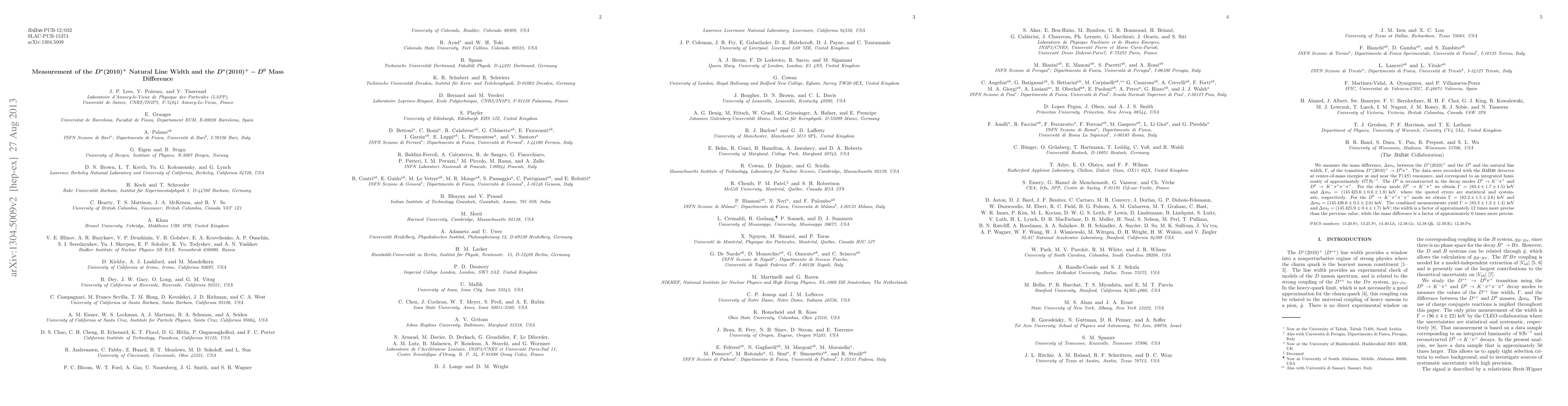 Researchers at BABAR detector measure D*(2010)+ natural line width and mass difference with high precision, improving previous measurements by a factor of 6-12.