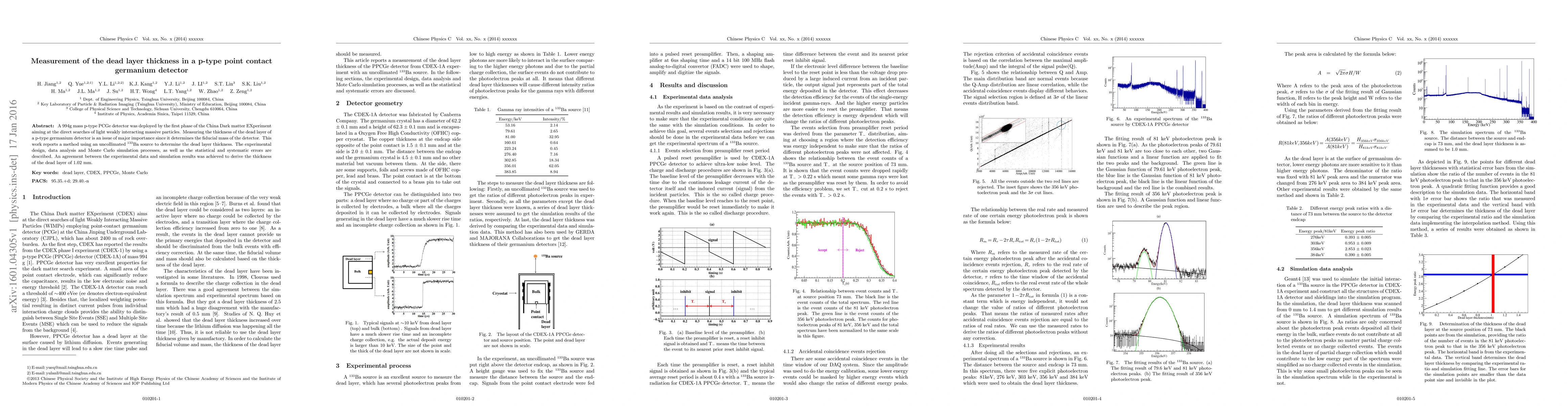 This paper presents a method for measuring the dead layer thickness in a p-type point contact germanium detector used in the China Dark matter EXperiment, employing an uncollimated 133Ba source. The study combines experimental design, data analysis, and Monte Carlo simulations to determine the dead layer thickness at 1.02 mm, ensuring accurate fiducial mass determination.
