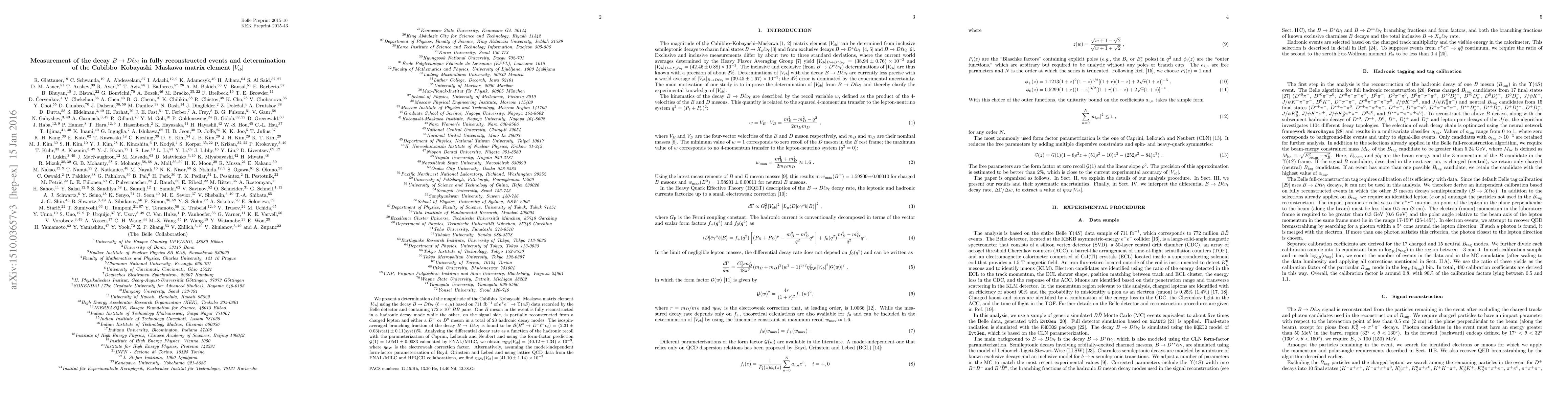 Researchers measured the decay $B o D au$ in 711 fb$^{-1}$ data to determine the Cabibbo-Kobayashi-Maskawa matrix element $|V_{cb}|$, finding an average value of $oxed{eta_c=(40.12 ext{ to }41.10) imes 10^{-3}}$.