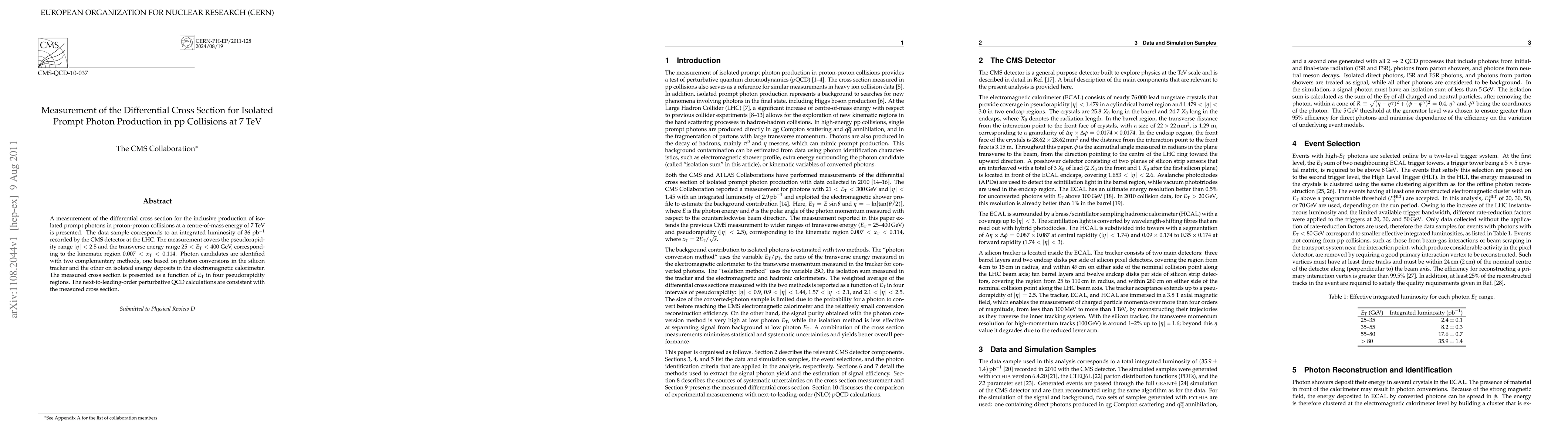 This paper reports on the differential cross section for isolated prompt photon production in proton-proton collisions at 7 TeV, using data from the CMS detector at the LHC. The results are consistent with next-to-leading-order perturbative QCD calculations.