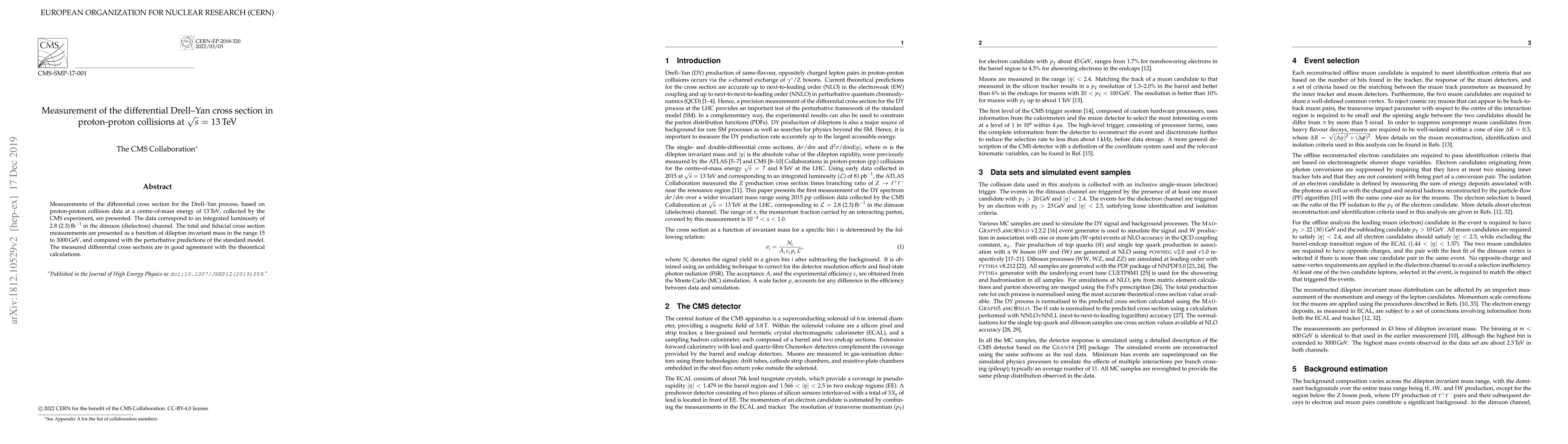 This paper presents measurements of the differential cross section for the Drell-Yan process in proton-proton collisions at 13 TeV, using data from the CMS experiment. The results are in good agreement with standard model predictions.