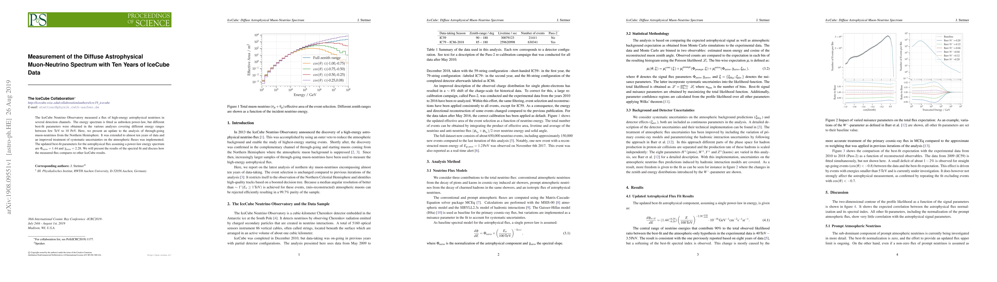 This paper updates the IceCube Neutrino Observatory's measurement of the diffuse astrophysical muon-neutrino spectrum using nearly ten years of data, revealing an unbroken power-law spectrum with best-fit parameters $\Phi_{astro}=1.44$ and $\gamma_{astro}=2.28$. The analysis includes improved systematic uncertainties treatment and compares these findings to other IceCube results.