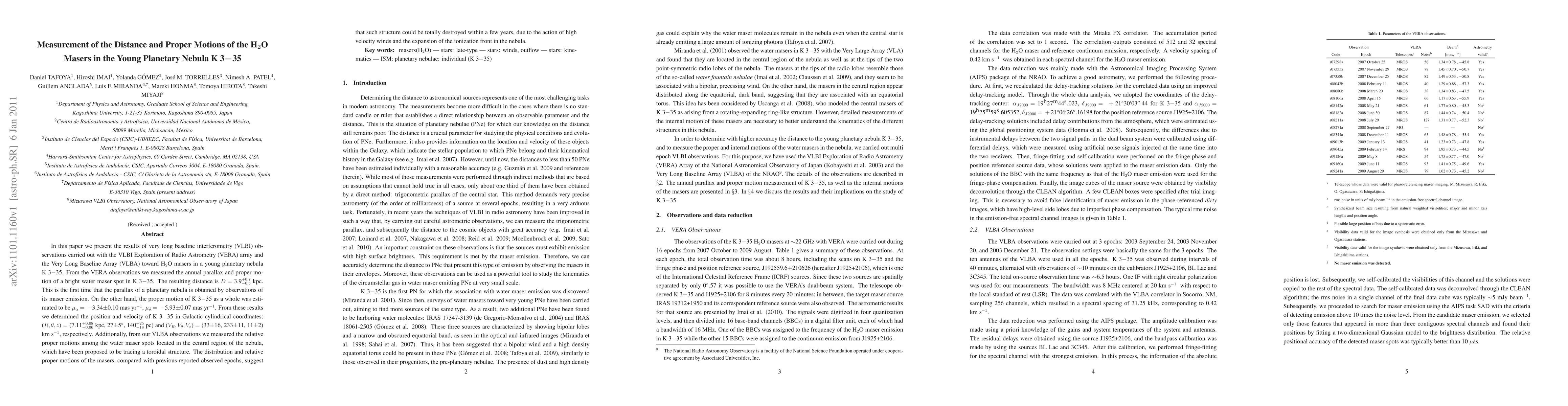 In this paper we present the results of very long baseline interferometry (VLBI) ob- servations carried out with the VLBI Exploration of Radio Astrometry (VERA) array and the Very Long Baseline Array (VLBA) toward H2O masers in a young planetary nebula K 3-35. From the VERA observations we measured the annual parallax and proper mo- tion of a bright water maser spot in K 3-35. The resulting distance is D = 3.9+0.7 kpc. -0.5 This is the first time that the parallax of a planetary nebula is obtained by observations of its maser emission. On the other hand, the proper motion of K 3-35 as a whole was esti- mated to be {\mu}{\alpha} = -3.34+/-0.10 mas yr-1, {\mu}{\delta} = -5.93+/-0.07 mas yr-1. From these results we determined the position and velocity of K 3-35 in Galactic cylindrical coordinates: (R,{\theta},z) = (7.11+0.08-0.06 kpc, 27+/-5{\circ}, 140+25-18 pc) and (VR, V{\theta}, Vz) = (33+/-16, 233+/-11, 11+/-2) km s-1, respectively. Additionally, from our VLBA observations we measured the relative proper motions among the water maser spots located in the central region of the nebula, which have been proposed to be tracing a toroidal structure. The distribution and relative proper motions of the masers, compared with previous reported observed epochs, suggest that such structure could be totally destroyed within a few years, due to the action of high velocity winds and the expansion of the ionization front in the nebula.