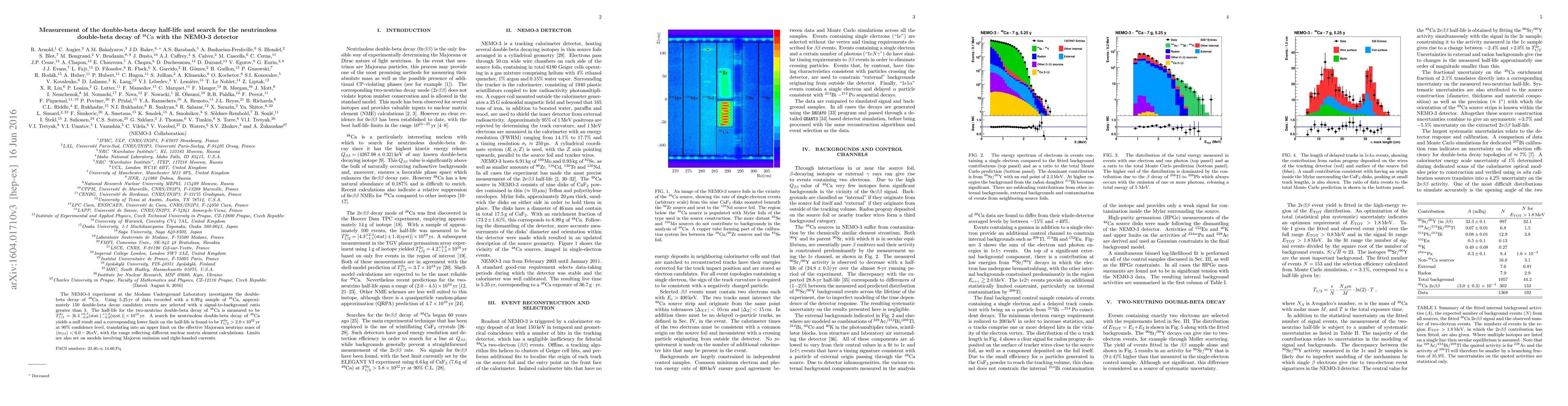 The NEMO-3 experiment measured the half-life of the two-neutrino double-beta decay of $^{48}{\rm Ca}$ to be $6.4 \times 10^{19}$ years. The search for neutrinoless double-beta decay yielded no detection, establishing a lower half-life limit of $2.0 \times 10^{22}$ years and an upper limit on the effective Majorana neutrino mass.