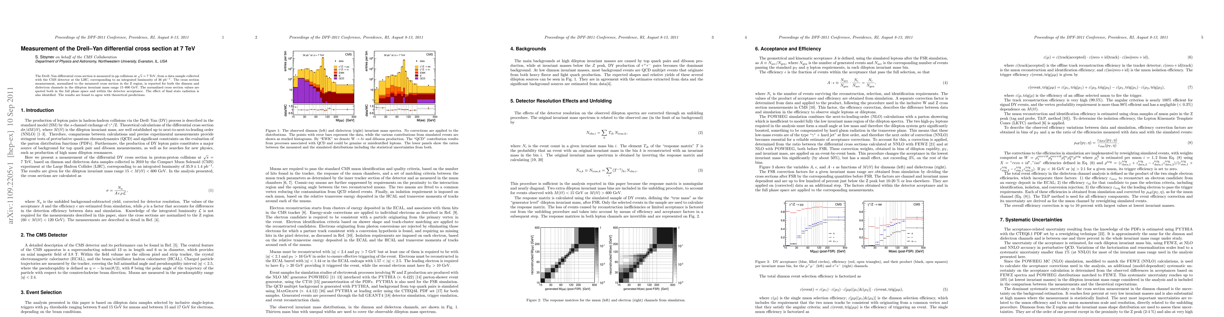 This paper measures the Drell-Yan differential cross section in pp collisions at 7 TeV using the CMS detector at the LHC, reporting results for both dimuon and dielectron channels. The findings agree with theoretical predictions and account for final state radiation effects.