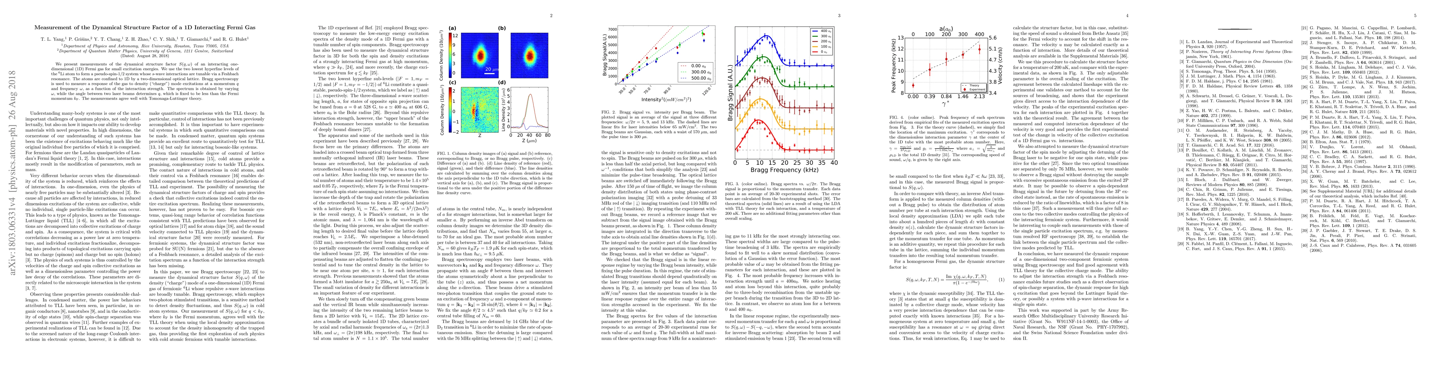 This paper reports on the measurement of the dynamical structure factor $S(q,\omega)$ of a 1D Fermi gas using Bragg spectroscopy, showing agreement with Tomonaga-Luttinger theory for small excitation energies. The study utilizes a tunable pseudo-spin-1/2 system of $^6$Li atoms in a 1D optical lattice.