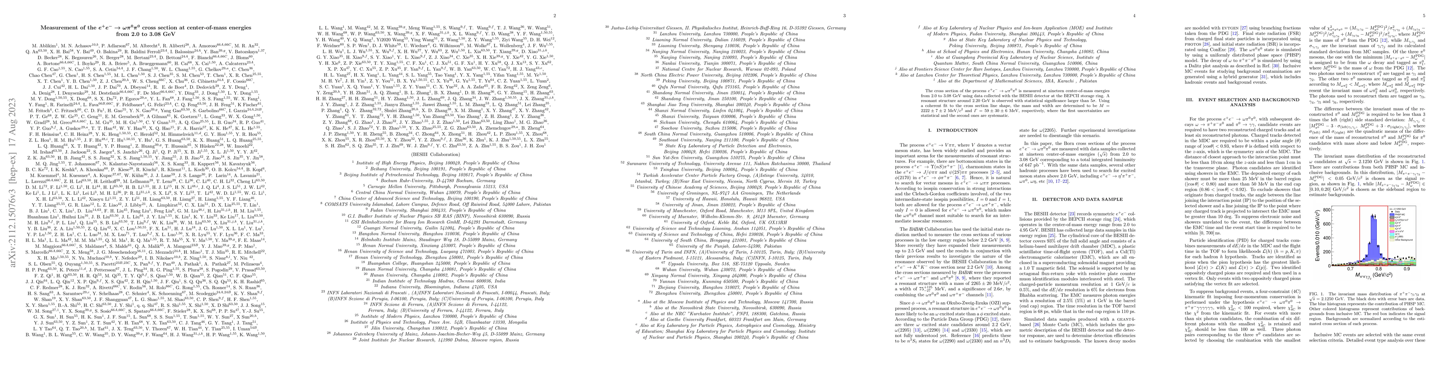 This study measures the $e^{+}e^{-}\to\omega\pi^{0}\pi^{0}$ cross section from 2.0 to 3.08 GeV, revealing a resonant structure around 2.20 GeV with a $5\sigma$ significance. The mass and width of the resonance are determined to be $2222\pm7\pm2~{\rm MeV}/c^2$ and $59\pm30\pm6~{\rm MeV}$, respectively.