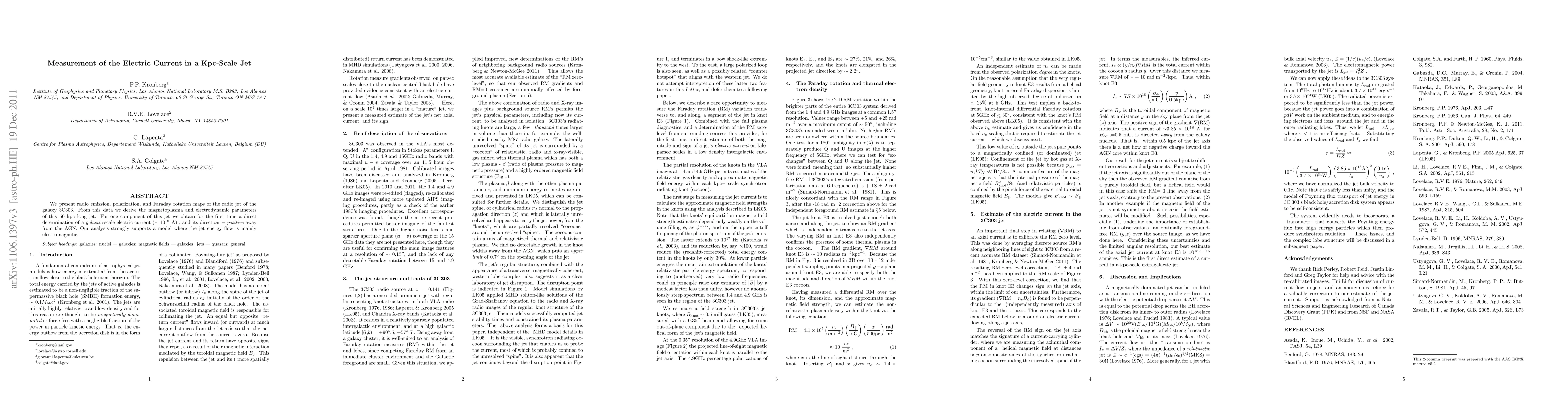 We present radio emission, polarization, and Faraday rotation maps of the radio jet of the galaxy 3C303. From this data we derive the magnetoplasma and electrodynamic parameters of this 50 kpc long jet. For a {$\sim 2$} kpc segment of this jet we obtain for the first time a direct determination of a {\it galactic}-scale electric current ($\sim 3 \times 10^{18}$ A), and its direction $-$ {\it positive} away from the AGN. Our analysis strongly supports a model where the jet energy flow is mainly electromagnetic.