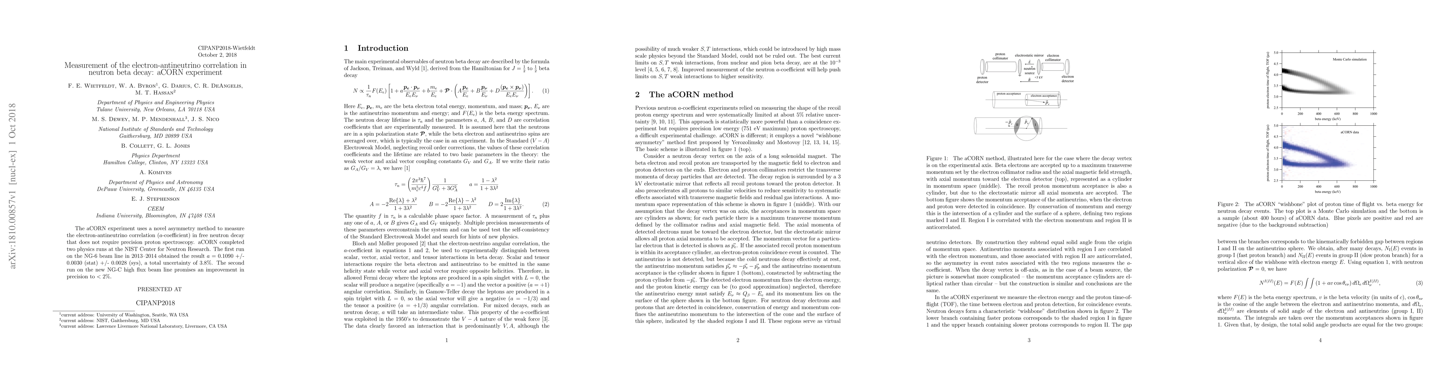 The aCORN experiment measures the electron-antineutrino correlation in neutron beta decay using a novel asymmetry method, achieving a result of a = 0.1090 +/- 0.0030 (stat) +/- 0.0028 (sys) with a total uncertainty of 3.8%. The experiment aims to improve precision to <2% in future runs.