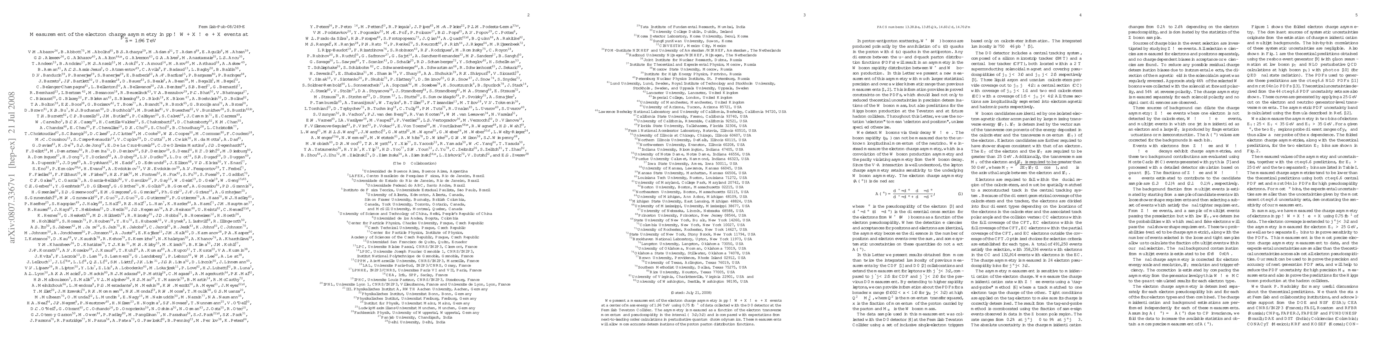 This study measures the electron charge asymmetry in W boson decays at a center-of-mass energy of 1.96 TeV using the D0 detector at the Tevatron. The results, compared with theoretical predictions, aim to refine the understanding of proton parton distribution functions.