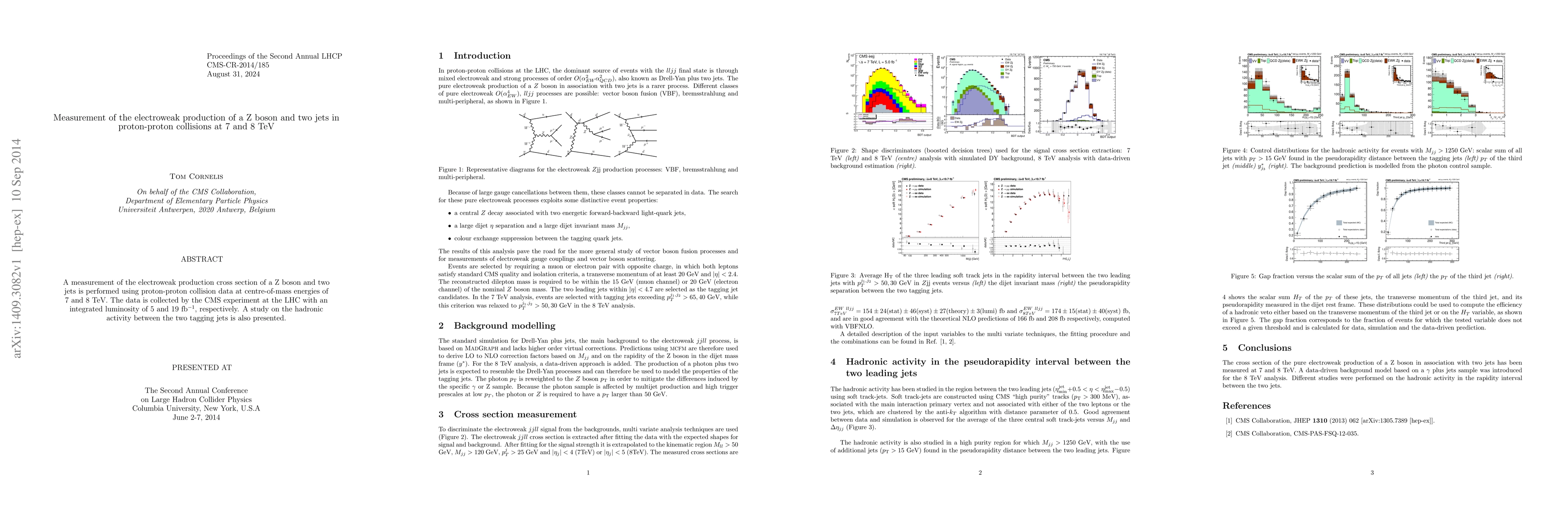 This paper measures the electroweak production of a Z boson accompanied by two jets in proton-proton collisions at 7 and 8 TeV using CMS data from the LHC, with integrated luminosities of 5 and 19 fb$^{-1}$, respectively. Additionally, it explores the hadronic activity between the two tagged jets.