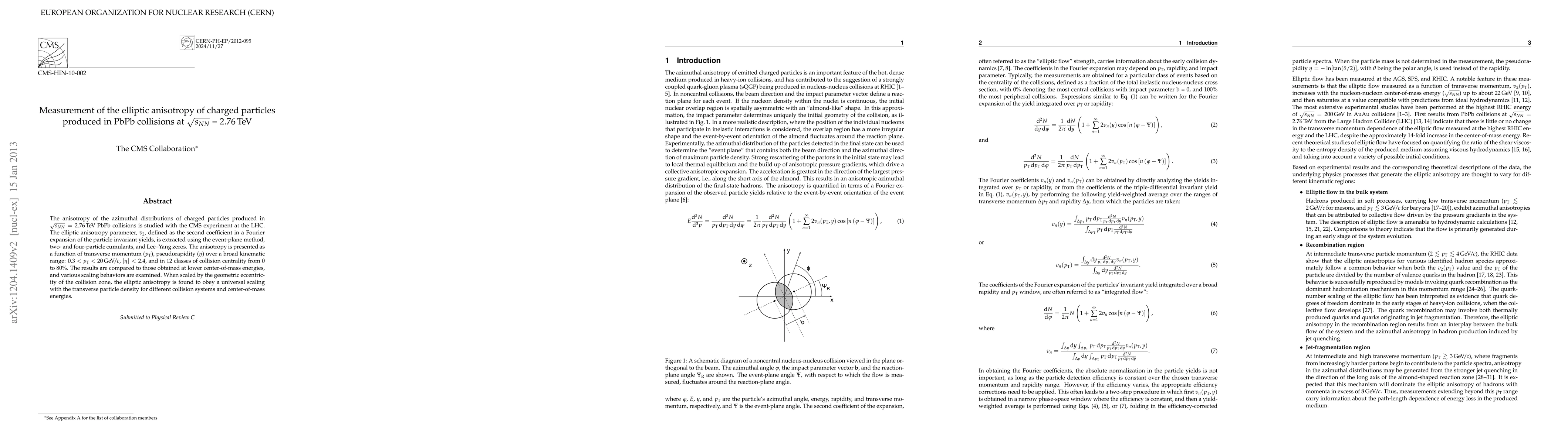 The anisotropy of the azimuthal distributions of charged particles produced in PbPb collisions with a nucleon-nucleon center-of-mass energy of 2.76 TeV is studied with the CMS experiment at the LHC. The elliptic anisotropy parameter defined as the second coefficient in a Fourier expansion of the particle invariant yields, is extracted using the event-plane method, two- and four-particle cumulants, and Lee--Yang zeros. The anisotropy is presented as a function of transverse momentum (pt), pseudorapidity (eta) over a broad kinematic range: 0.3 < pt < 20 GeV, abs(eta) < 2.4, and in 12 classes of collision centrality from 0 to 80%. The results are compared to those obtained at lower center-of-mass energies, and various scaling behaviors are examined. When scaled by the geometric eccentricity of the collision zone, the elliptic anisotropy is found to obey a universal scaling with the transverse particle density for different collision systems and center-of-mass energies.