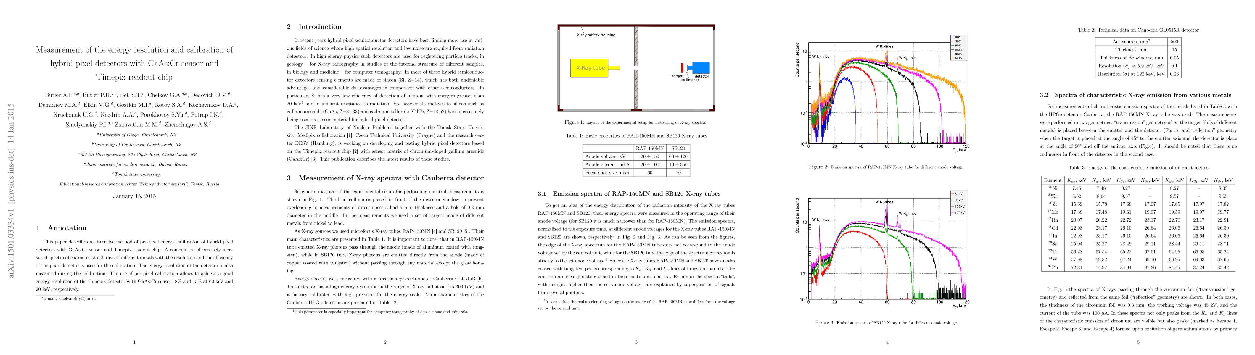 This paper presents an iterative method for per-pixel energy calibration of hybrid pixel detectors using GaAs:Cr sensors and Timepix readout chips, achieving energy resolutions of 8% at 60 keV and 13% at 20 keV through precise X-ray spectrum convolution.