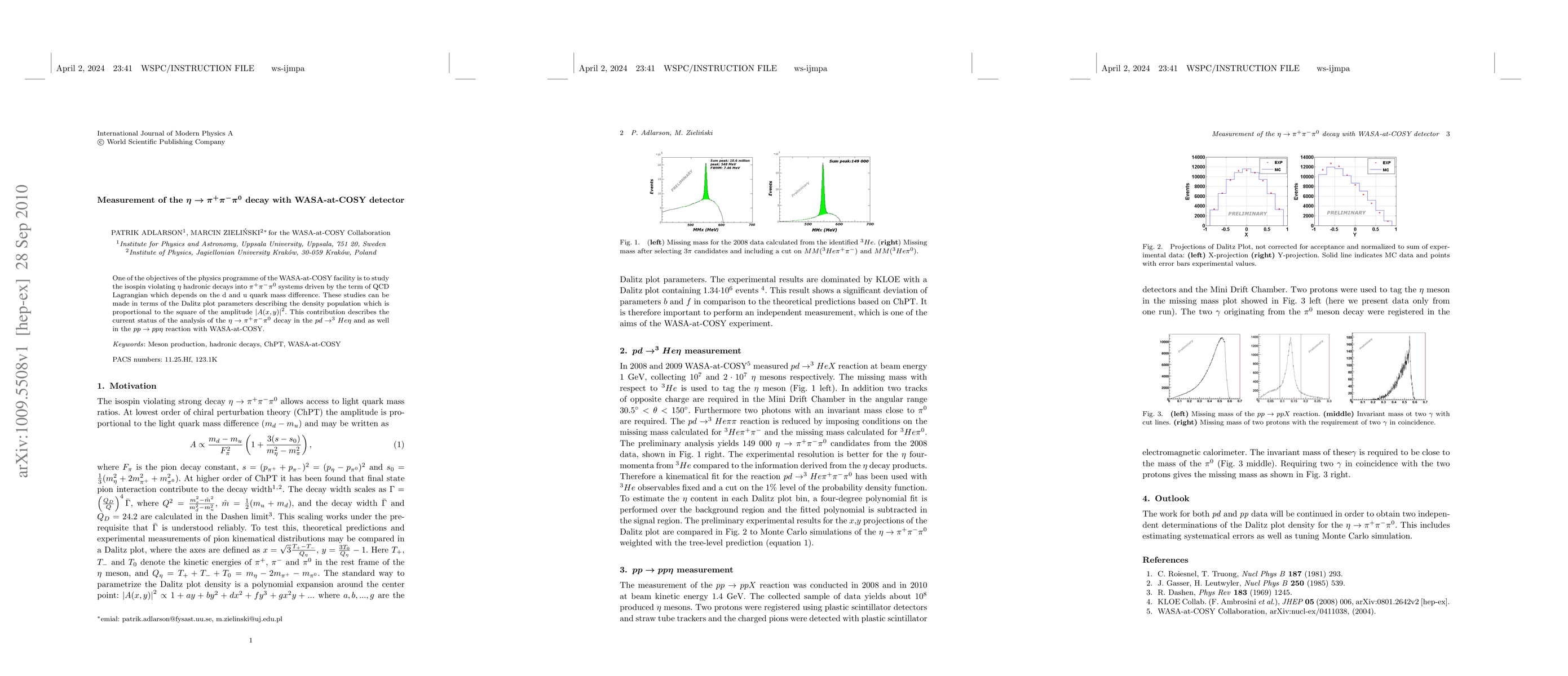 This research paper measures the eta->pi+pi-pi0 decay using the WASA-at-COSY detector to study isospin-violating decays driven by quark mass differences, providing insights into QCD Lagrangian parameters.