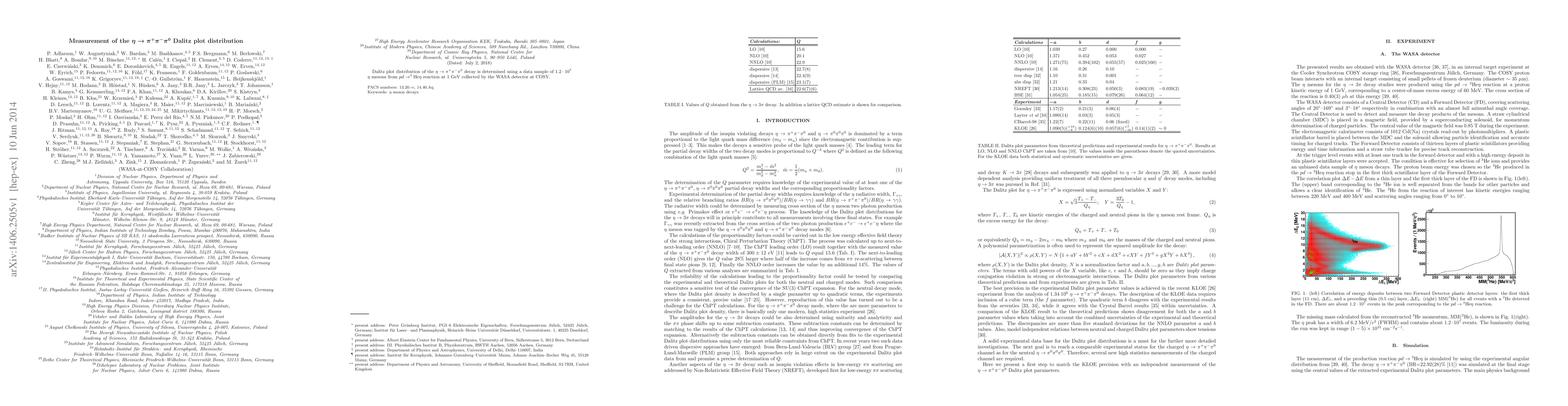 This study measures the Dalitz plot distribution of the $\eta\to\pi^+\pi^-\pi^0$ decay using a dataset of $1.2\cdot 10^7$ $\eta$ mesons from $pd\to ^3\textrm{He}\eta$ reactions at 1 GeV, collected by the WASA detector at COSY. The results provide insights into the dynamics of the decay process.