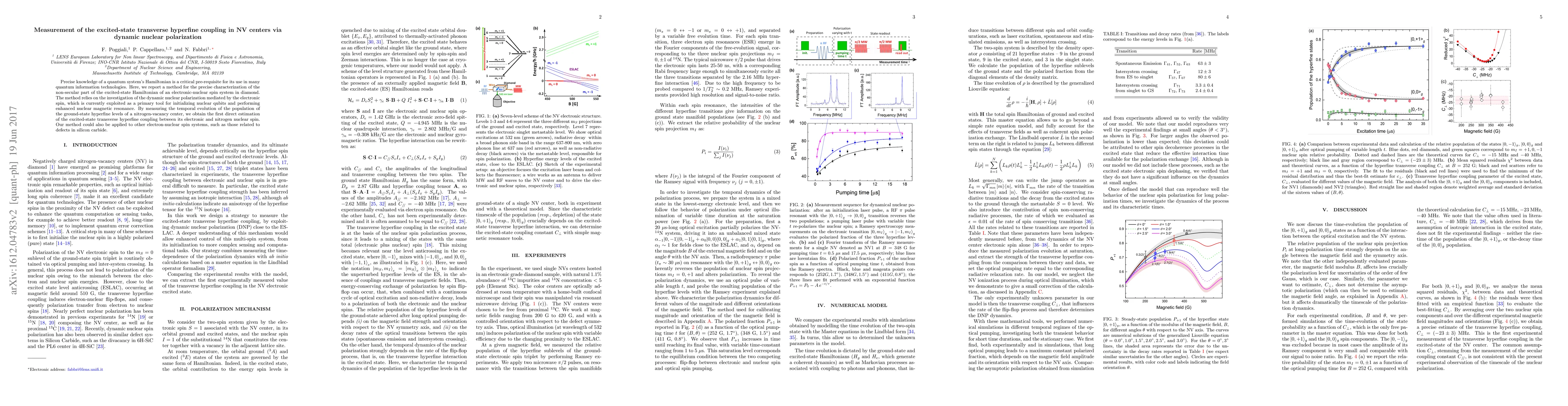 This paper presents a method for characterizing the excited-state transverse hyperfine coupling in NV centers via dynamic nuclear polarization, providing a direct estimation of the coupling between electronic and nitrogen nuclear spins. The technique could be extended to other electron-nuclear spin systems in materials like silicon carbide.