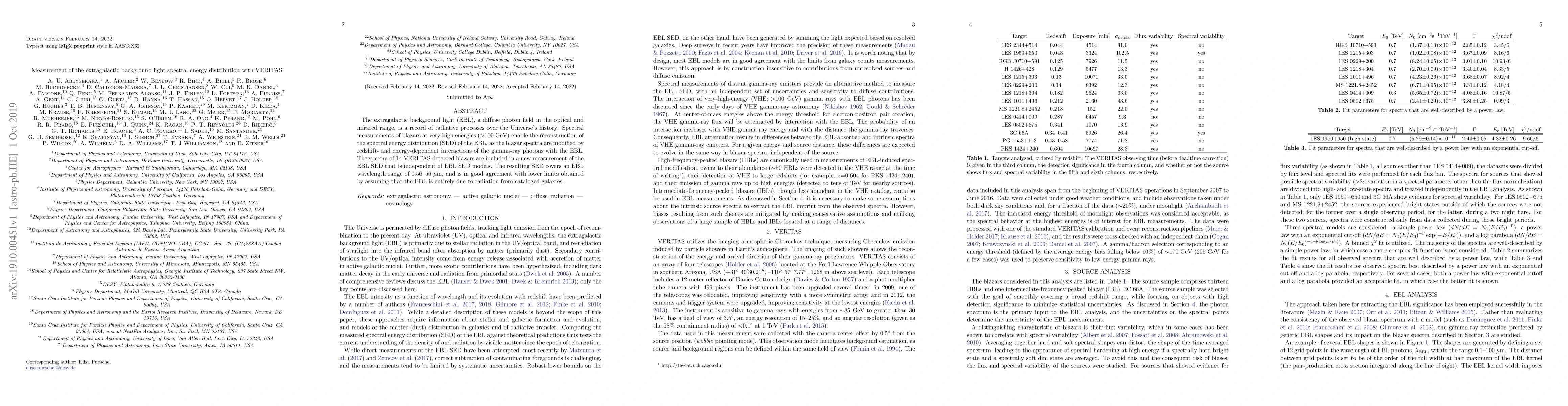 The VERITAS observatory measures the extragalactic background light (EBL) spectral energy distribution (SED) using blazar spectra, revealing the EBL's contribution across 0.56-56 µm and supporting the hypothesis that cataloged galaxies primarily account for this radiation. This measurement is independent of existing EBL models.