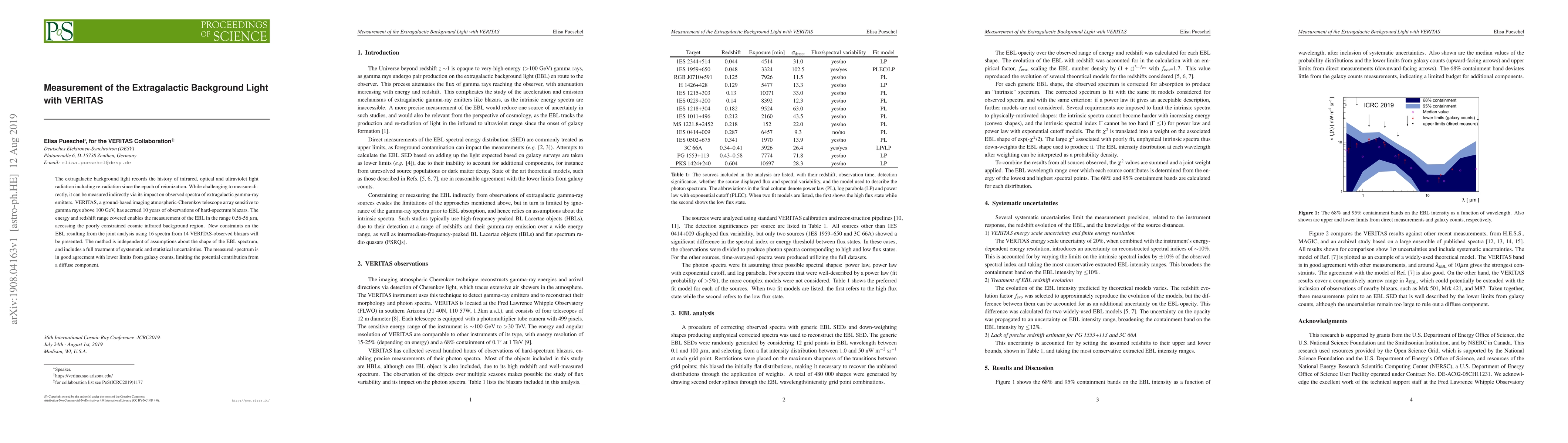 The VERITAS telescope array has measured the extragalactic background light (EBL) indirectly through its effect on gamma-ray emitters, providing new constraints on the EBL in the 0.56-56 µm range, and showing agreement with lower limits from galaxy counts. This method is robust against assumptions about the EBL spectrum and accounts for both systematic and statistical uncertainties.
