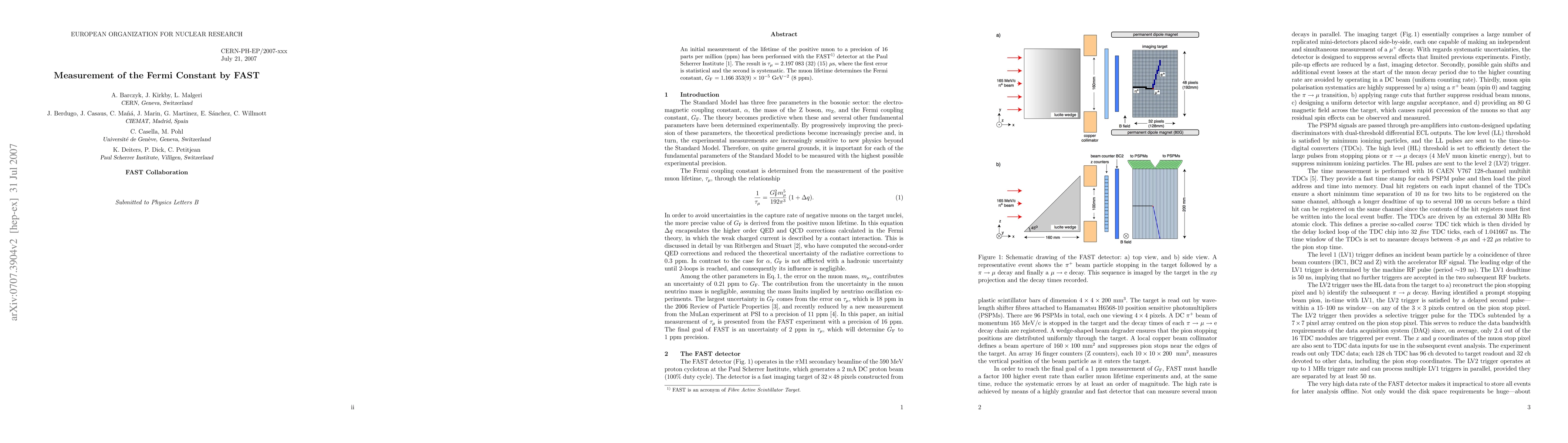 An initial measurement of the lifetime of the positive muon to a precision of 16 parts per million (ppm) has been performed with the FAST detector at the Paul Scherrer Institute. The result is tau_mu = 2.197083 (32) (15) microsec, where the first error is statistical and the second is systematic. The muon lifetime determines the Fermi constant, G_F = 1.166353 (9) x 10^-5 GeV^-2 (8 ppm).