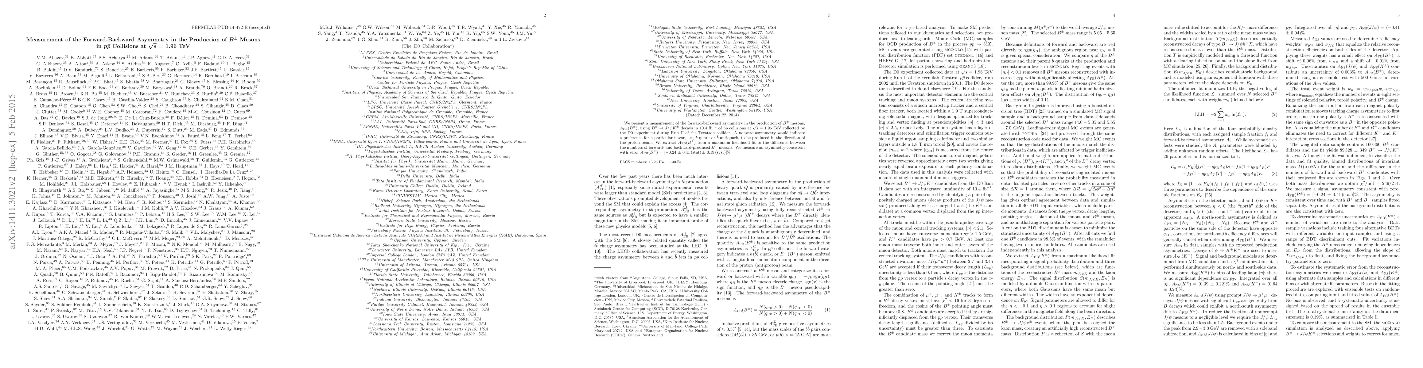 The D0 experiment measured the forward-backward asymmetry in $B^{\pm}$ meson production in $p\bar{p}$ collisions at 1.96 TeV, finding $A_{\rm FB}(B^{\pm}) = -0.24 \pm 0.41$ (stat) $\pm 0.19$ (syst)%, consistent with zero asymmetry. This result indicates no significant preference for $b$ quarks or $\bar{b}$ antiquarks in the production direction.