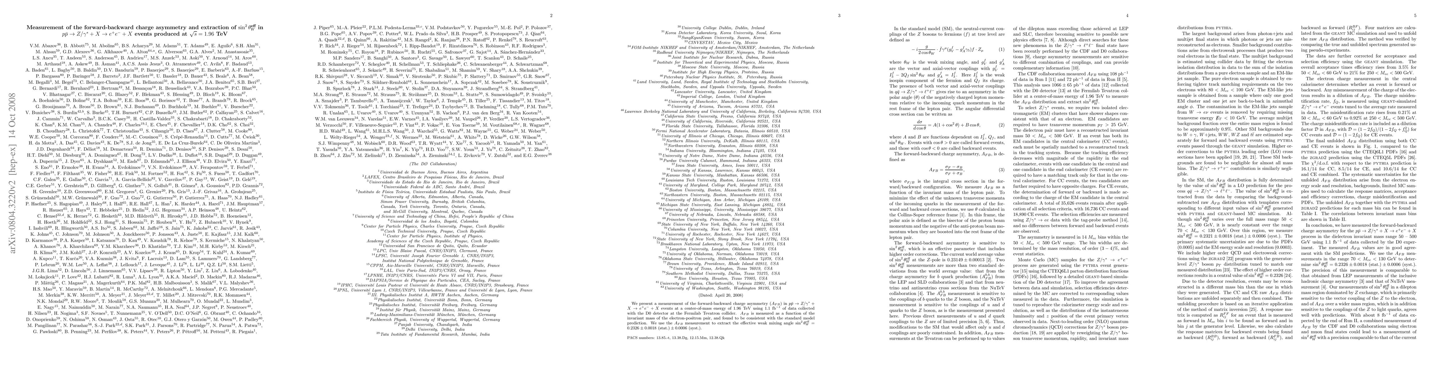 This paper measures the forward-backward charge asymmetry in $p\bar{p} \to Z/\gamma^{*}+X \to e^+e^-+X$ events at 1.96 TeV using D0 detector data, finding consistency with the standard model. The effective weak mixing angle $sin^2Theta^{eff}_W$ is extracted as 0.2327 ± 0.0018 (stat.) ± 0.0006 (syst.).