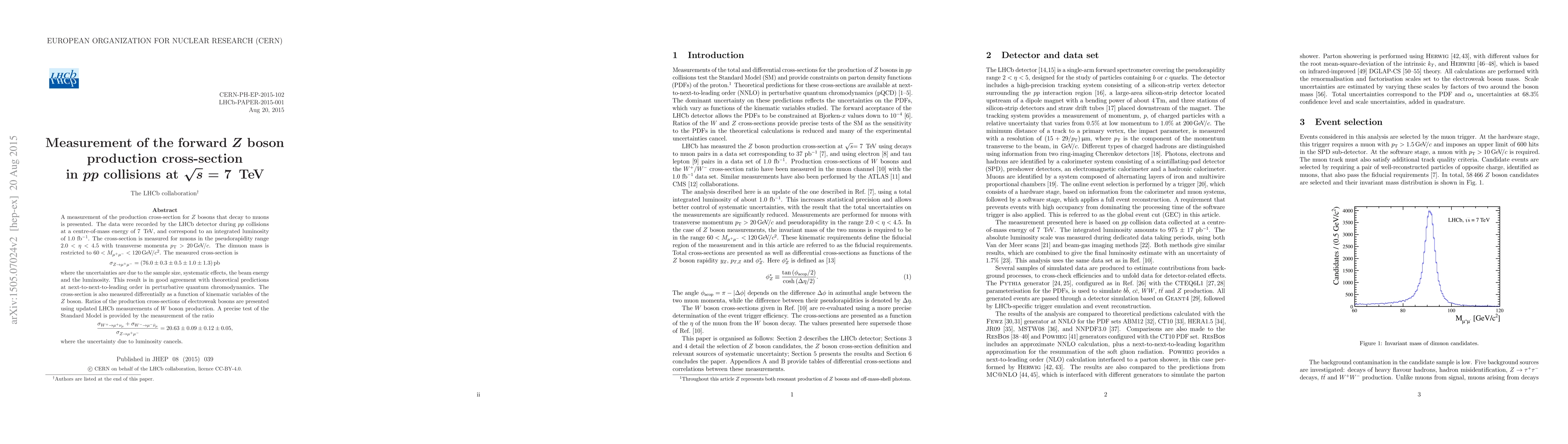 Researchers measured the production cross-section of Z bosons in proton-proton collisions at 7 TeV, confirming agreement with theoretical predictions and providing a precise test of the Standard Model.