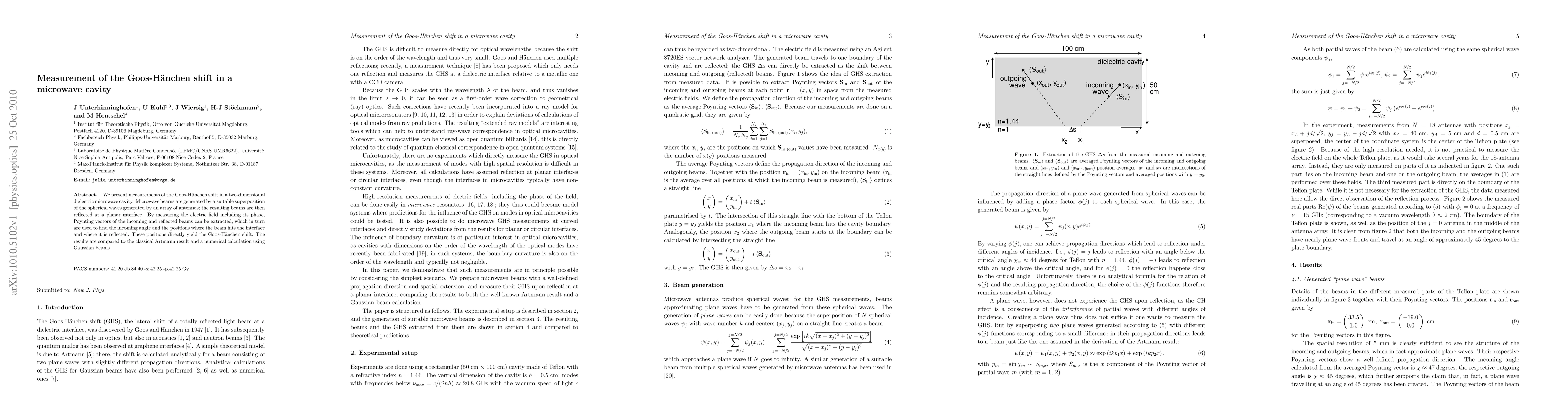 This study measures the Goos-Hänchen shift in a microwave cavity using generated beams and reflects them at a planar interface to determine the shift's position. The results are compared against classical theory and numerical calculations based on Gaussian beams.
