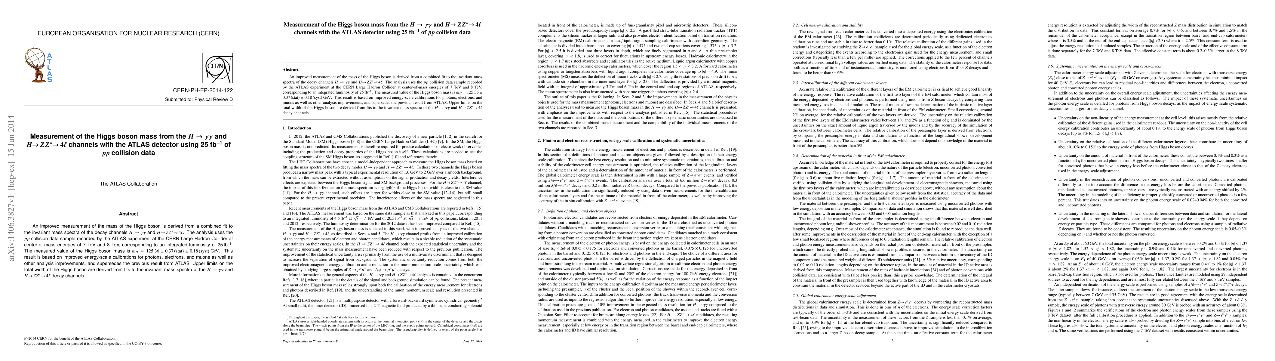 This paper reports an improved measurement of the Higgs boson mass from the $H\rightarrow \gamma\gamma$ and $H \rightarrow ZZ^{*} \rightarrow 4\ell$ decay channels using 25 fb$^{-1}$ of $pp$ collision data from the ATLAS detector, yielding a mass of $m_H$ = 125.36 $\pm$ 0.37 (stat) $\pm$ 0.18 (syst) GeV. The result benefits from enhanced energy-scale calibrations and analysis improvements.