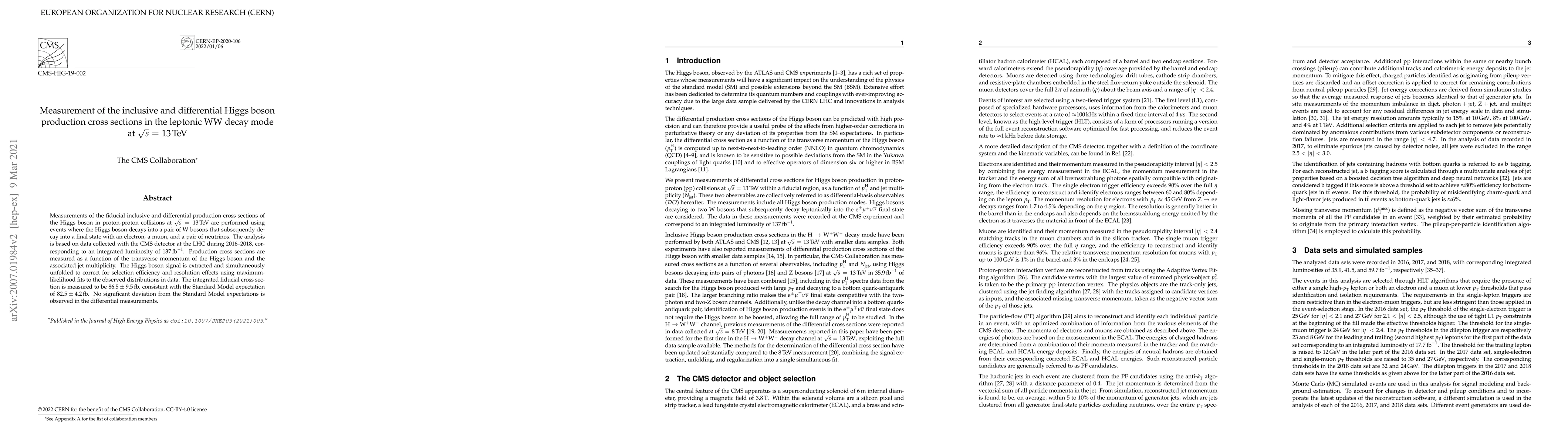 This paper measures the inclusive and differential production cross sections of the Higgs boson in proton-proton collisions at 13 TeV, focusing on its decay into a pair of W bosons, which subsequently decay into leptons and neutrinos. The results are consistent with Standard Model predictions, with no significant deviations observed.