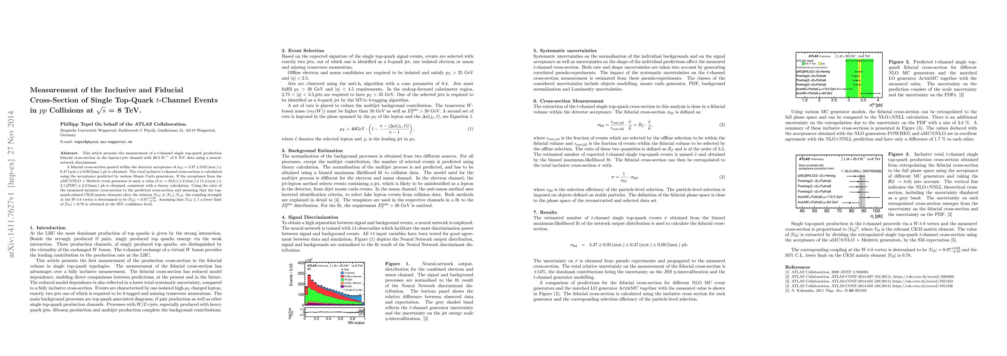 This paper measures the fiducial and inclusive cross-sections of single top-quark $t$-channel production at 8 TeV, obtaining $\sigma_{\rm fid} = 3.37 \pm 0.56 \pm 0.09$ pb and $\sigma_t = 82.6 \pm 12.7 \pm 5.4 \pm 2.3$ pb, consistent with Standard Model predictions. The study also determines $|V_{tb}| = 0.97^{+0.09}_{-0.10}$ with a 95% confidence lower limit of $|V_{tb}| > 0.78$.