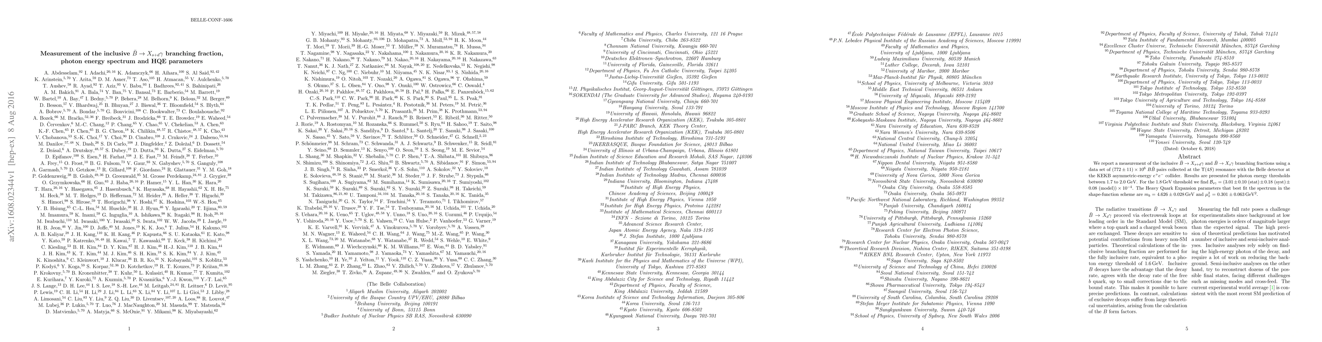 This paper measures the inclusive $B\to X_{s+d} \gamma$ and $B\to X_{s} \gamma$ branching fractions using data from the Belle detector at KEKB. The branching fraction for $B\to X_{s} \gamma$ at a 1.8 GeV photon threshold is found to be $(3.01 \pm 0.10) \times 10^{-4}$. The Heavy Quark Expansion parameters are determined to be $m_{b} = (4.626 \pm 0.028) \text{GeV}$ and $ \mu_{\pi}^{2} = (0.301\pm 0.063) \text{GeV}^2$.