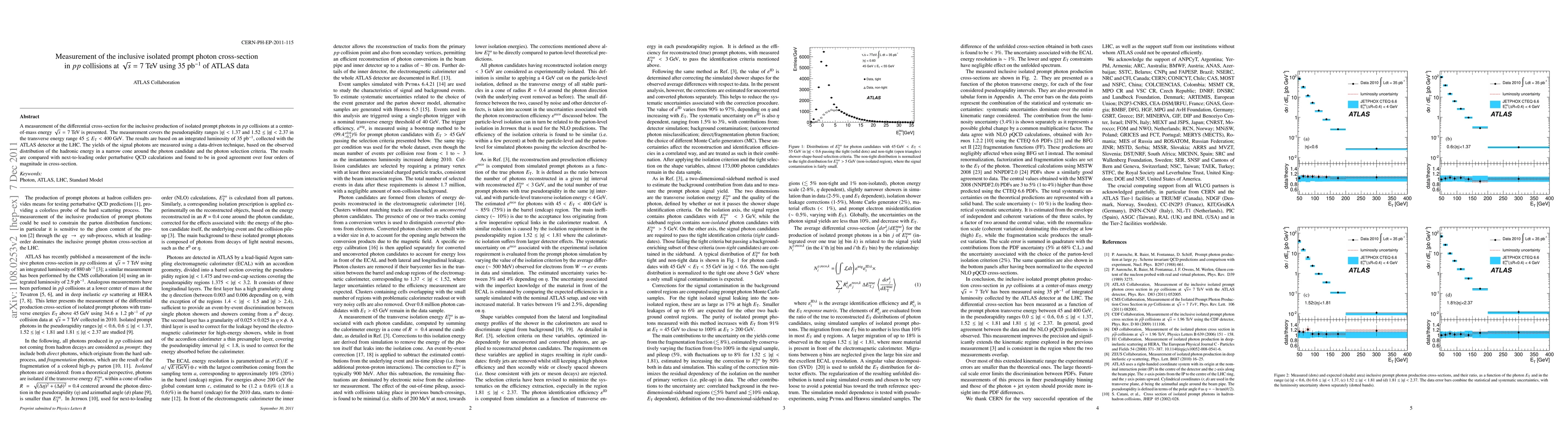 This paper reports a measurement of the inclusive isolated prompt photon cross-section in proton-proton collisions at 7 TeV using 35 pb⁻¹ of ATLAS data, finding results in agreement with next-to-leading order QCD calculations over four orders of magnitude.